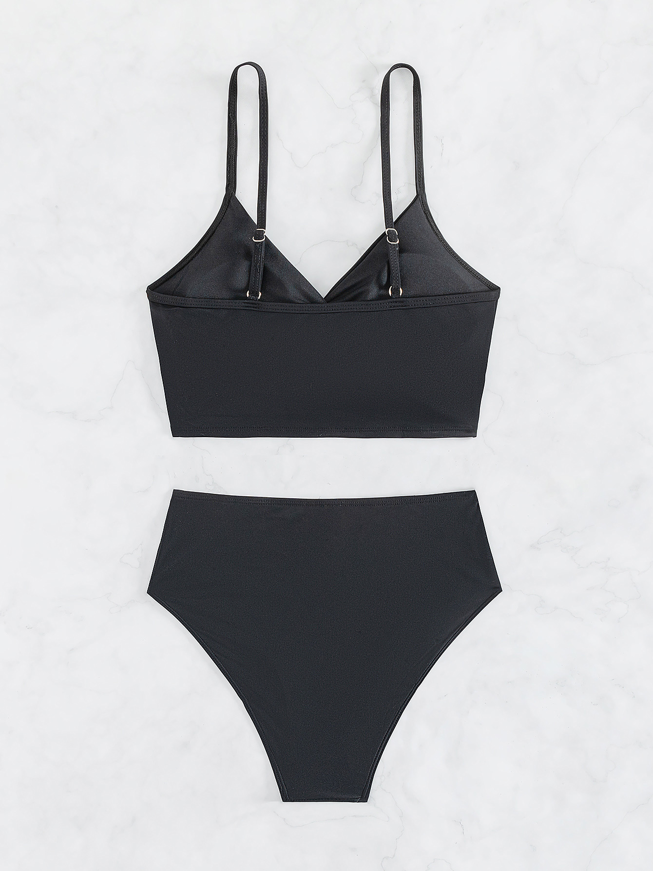 Bikini Solid Color High Waist Backless Sexy Bikini Split Swimsuit Swimwear