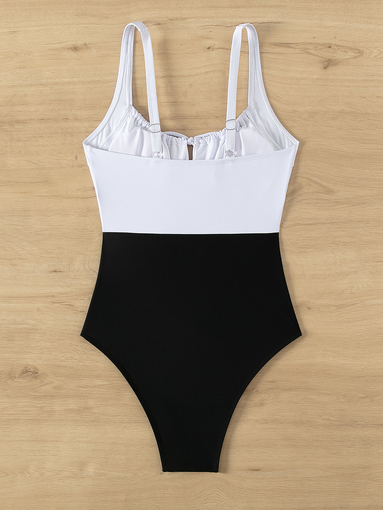 Bikini Solid Color High Waist Lace up One Piece Bikini Swimsuit Swimwear Women