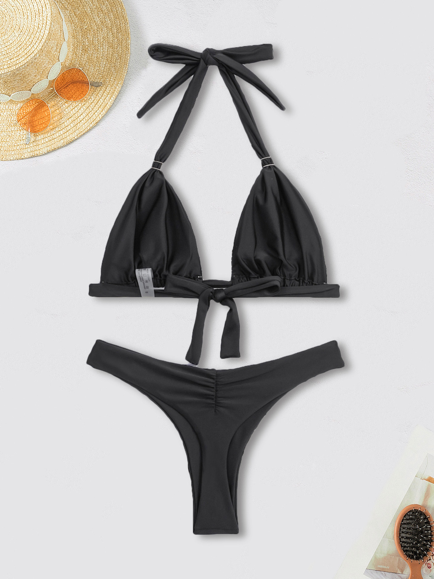 Bikini Solid Color Tied T Shaped Sexy Bikini Split Swimsuit Swimwear