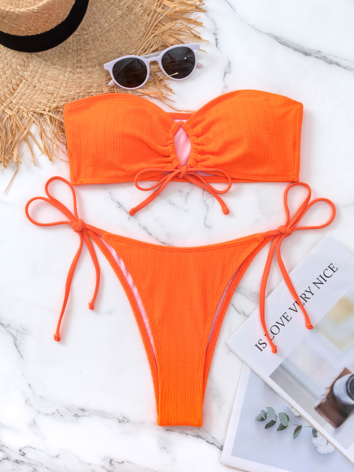 Bikini Solid Color Tube Top Lace up Sexy Halter Bikini Swimsuit for Women