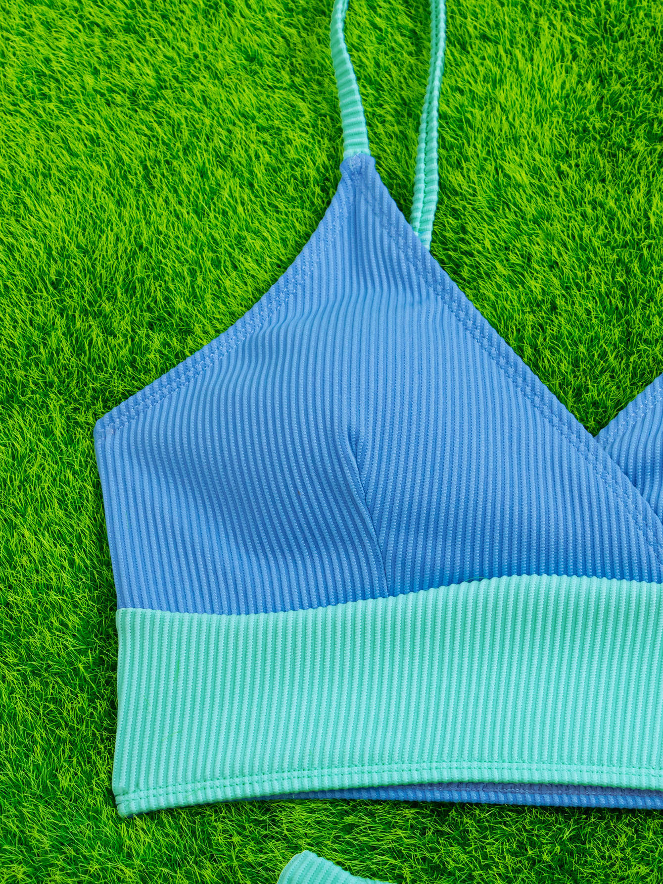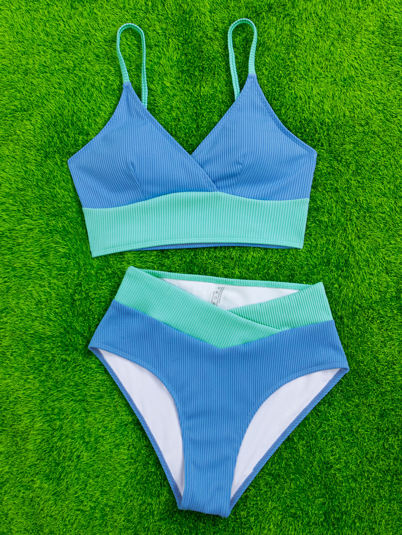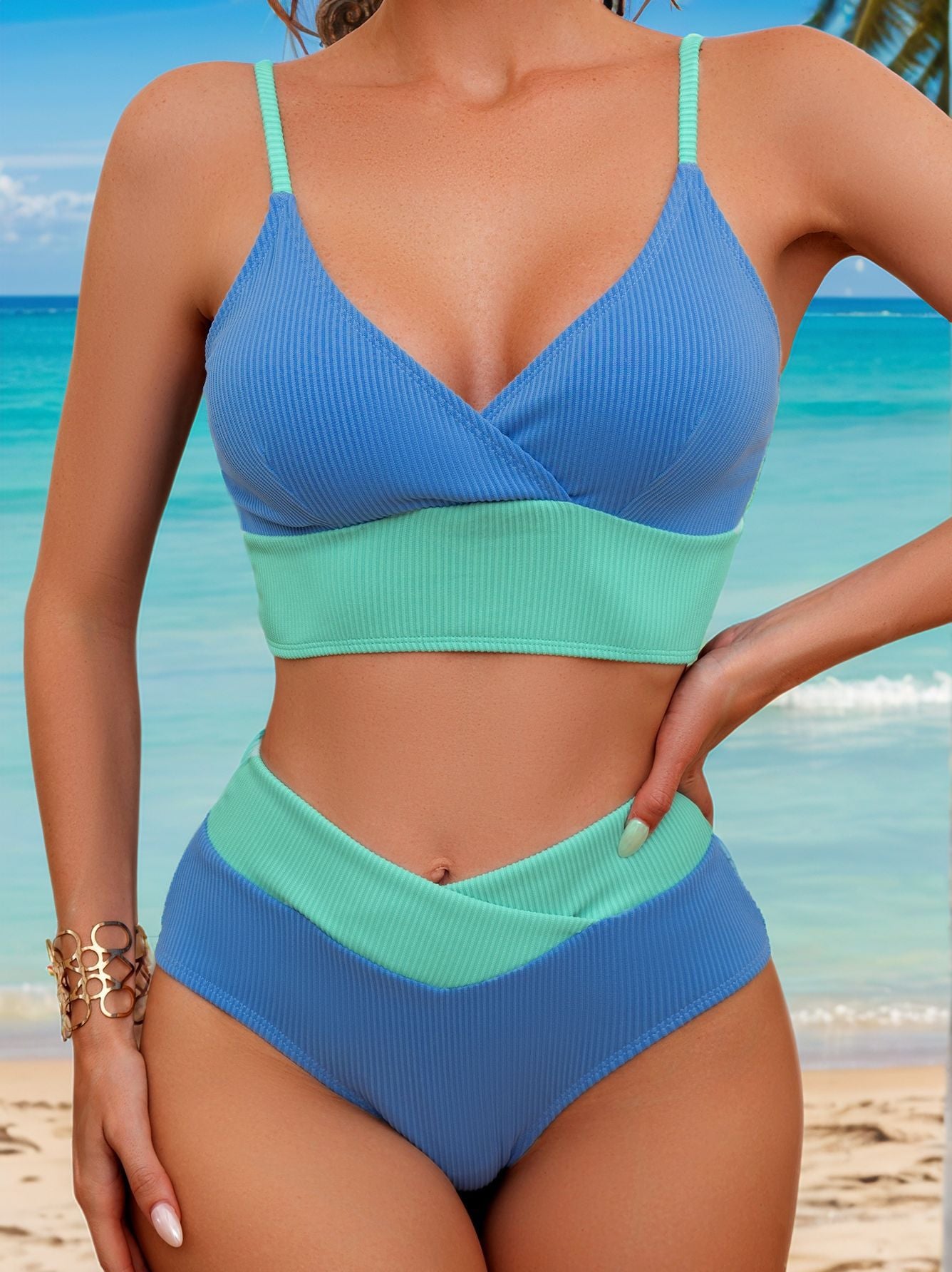 Bikini Sunken Stripe Color Matching High Waist Sexy Split Swimsuit Bikini Women Swimsuit