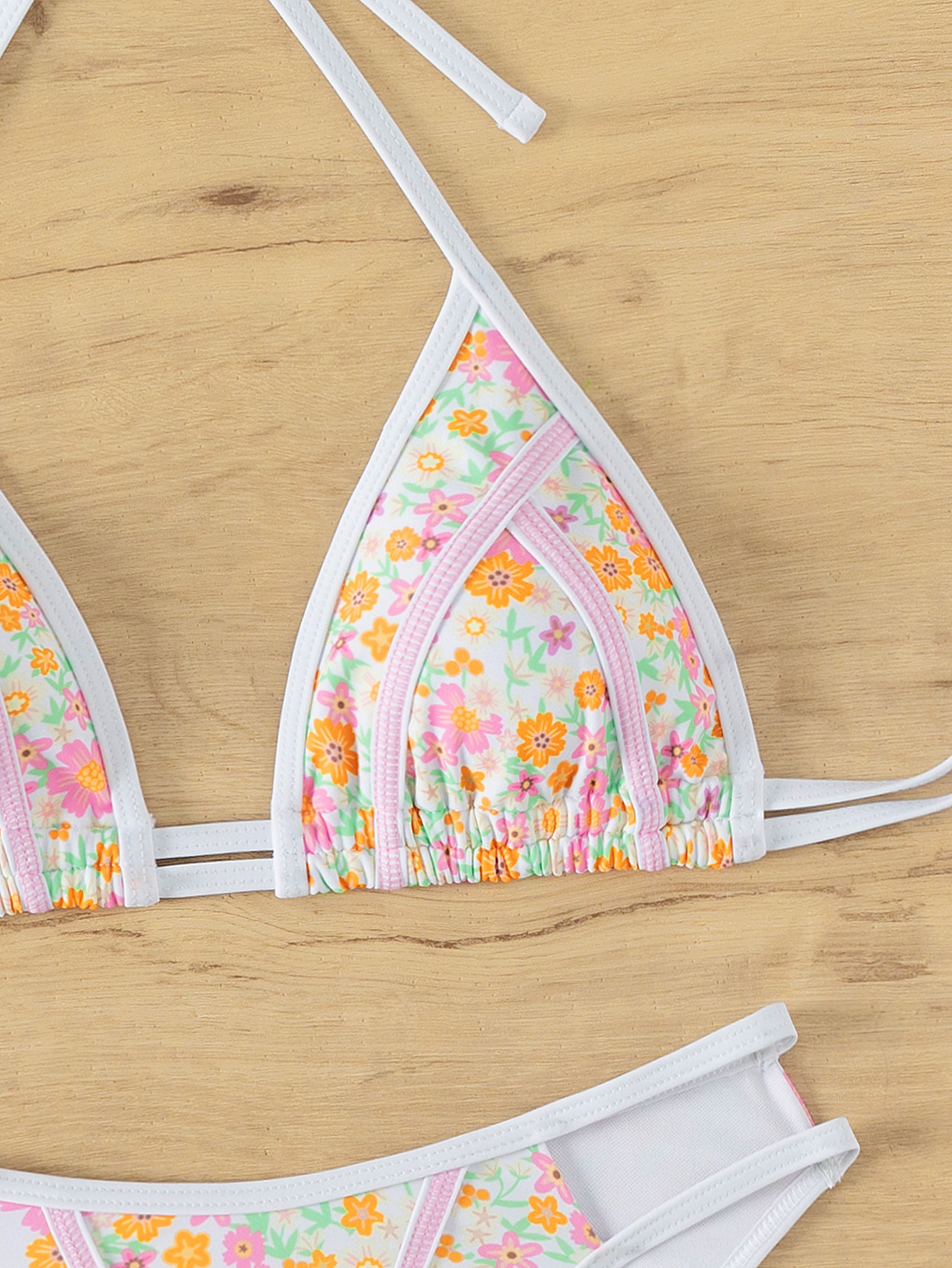 Bikini Triangle Lace up Small Floral Print Sexy Split Bikini Swim Two Piece Sets Women