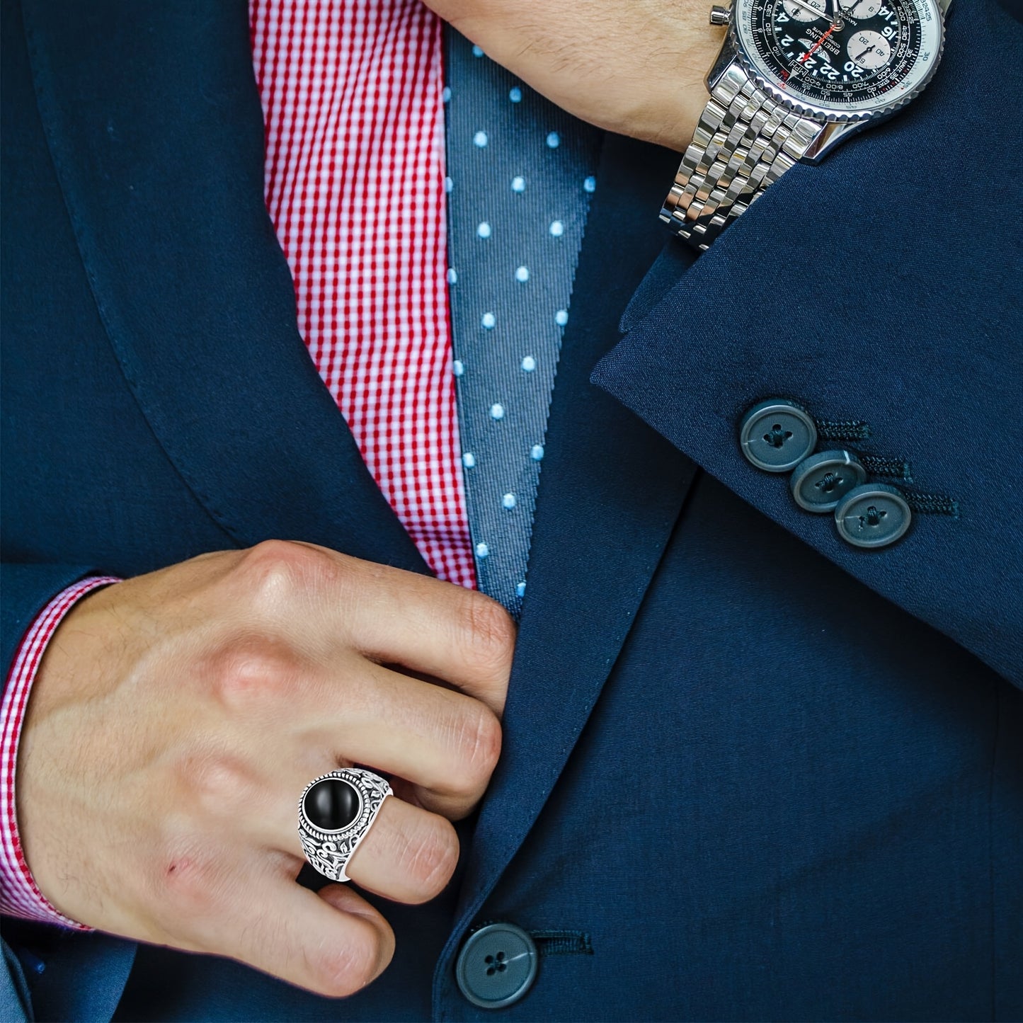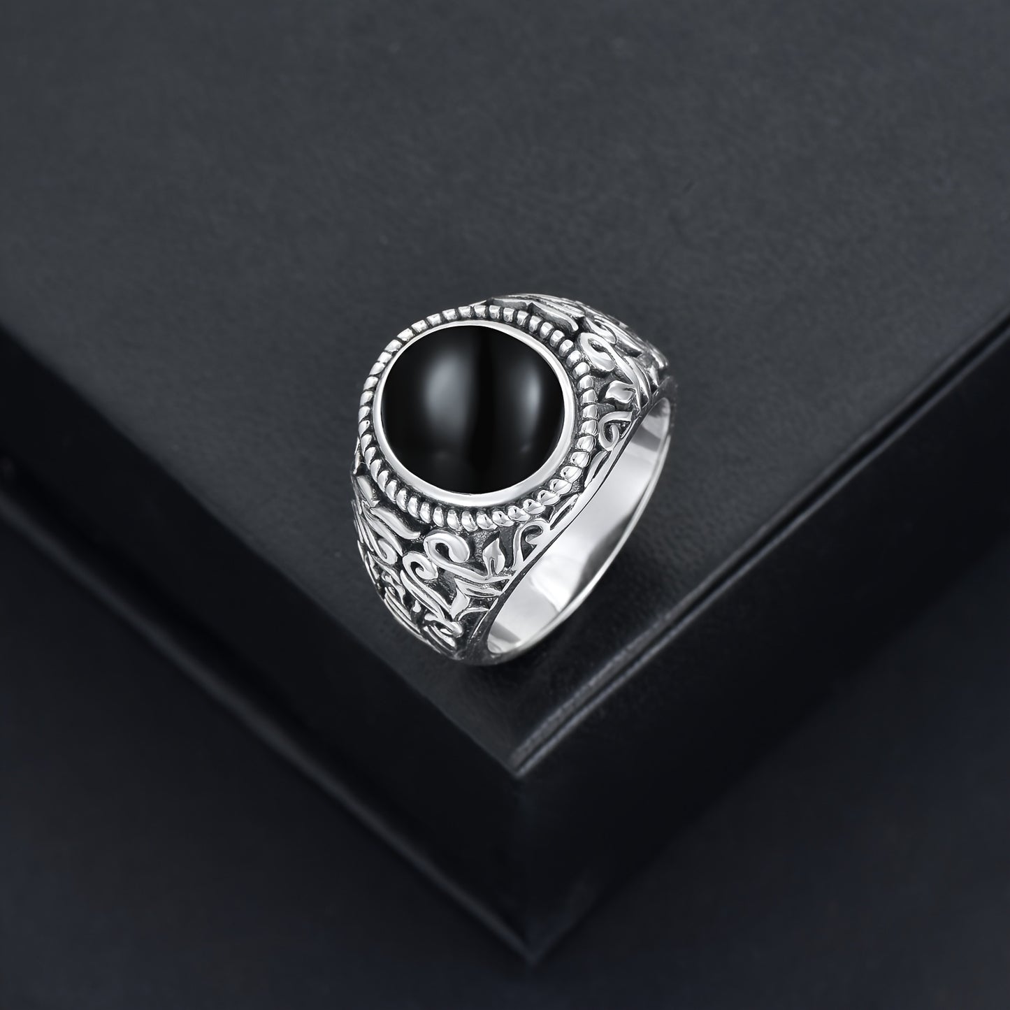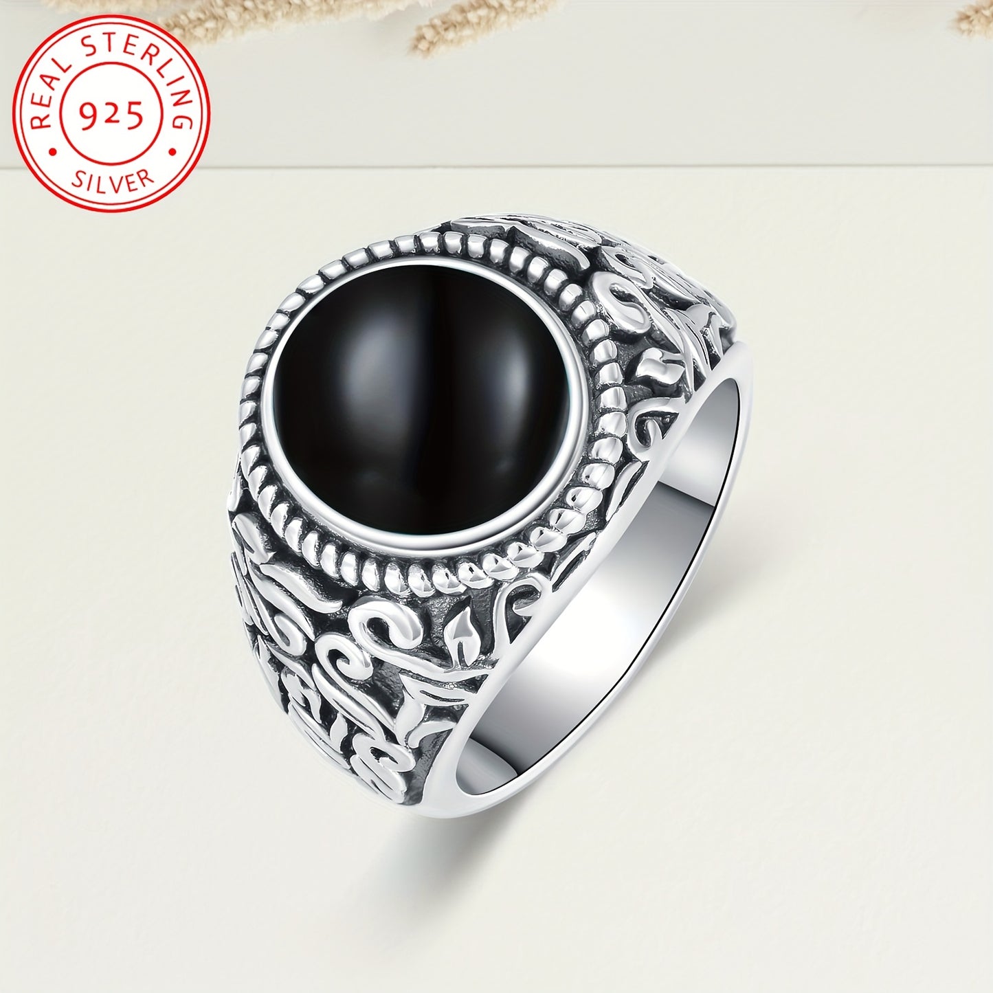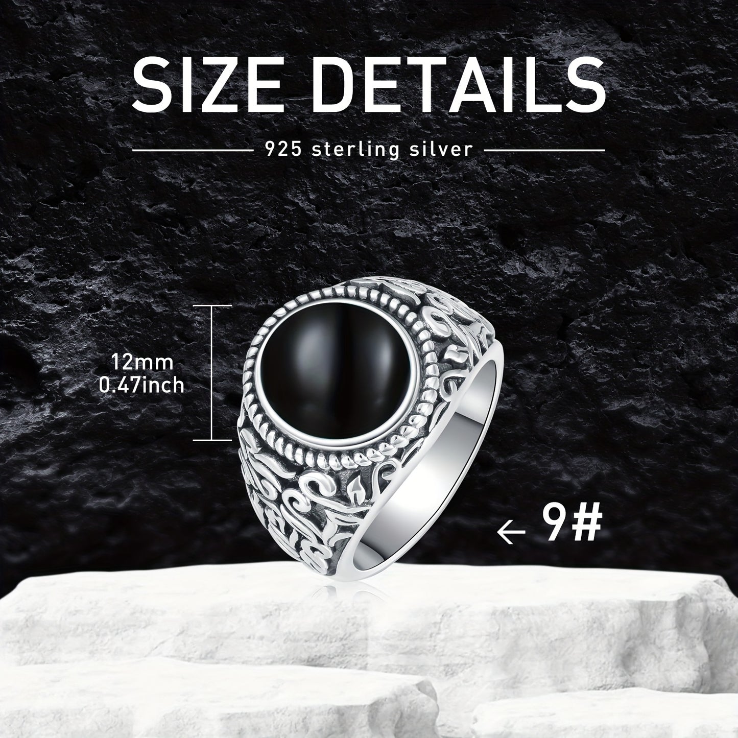 Black Onyx Rings for Men 925 Sterling 925 Silver Vintage Biker Punk Black Ring for Father