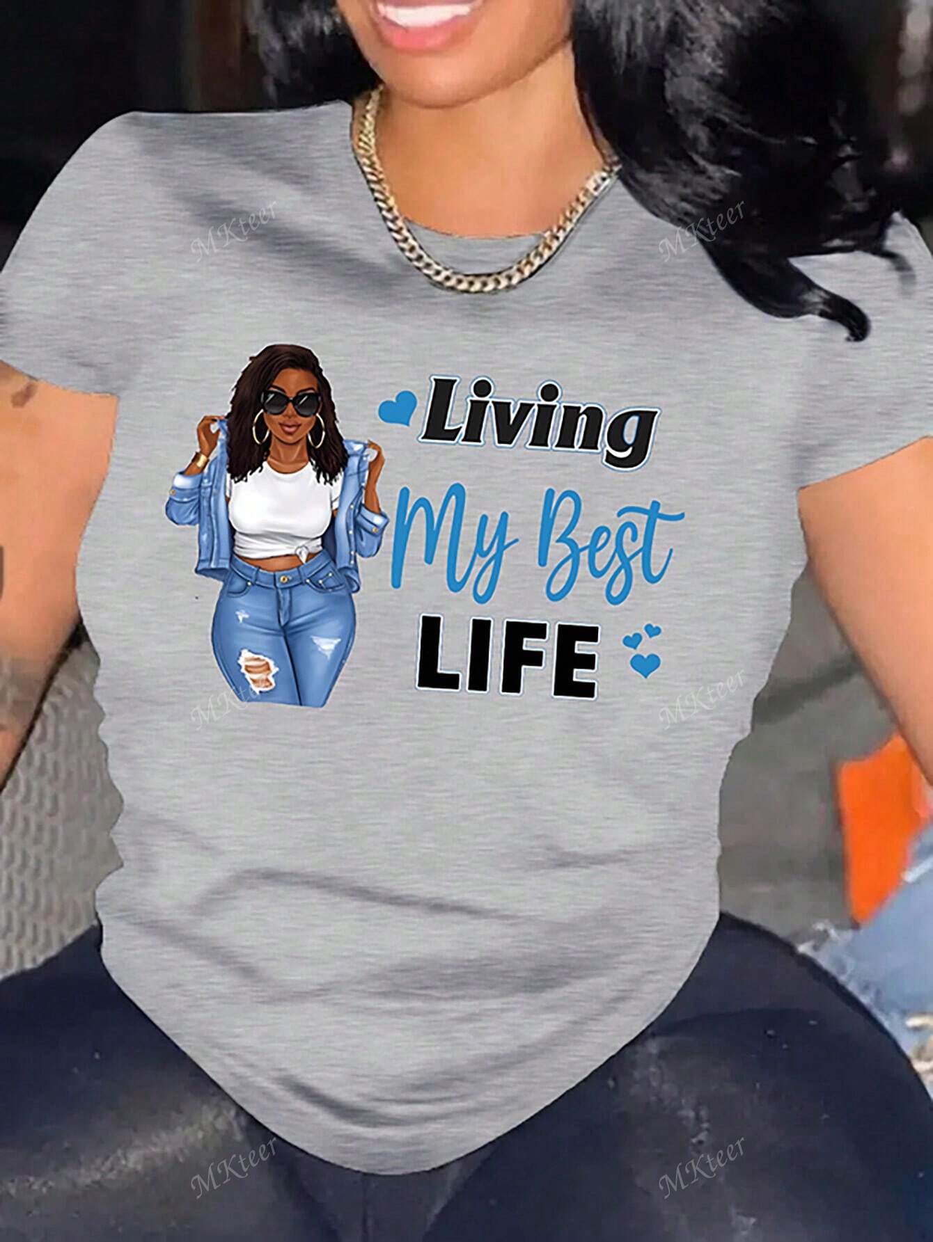 Black Queen Afro Dripping Art Women's Plus Casual Tee T Shirt