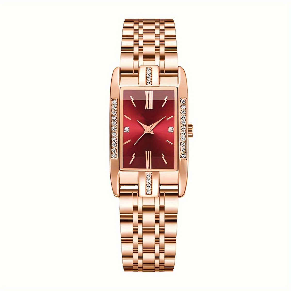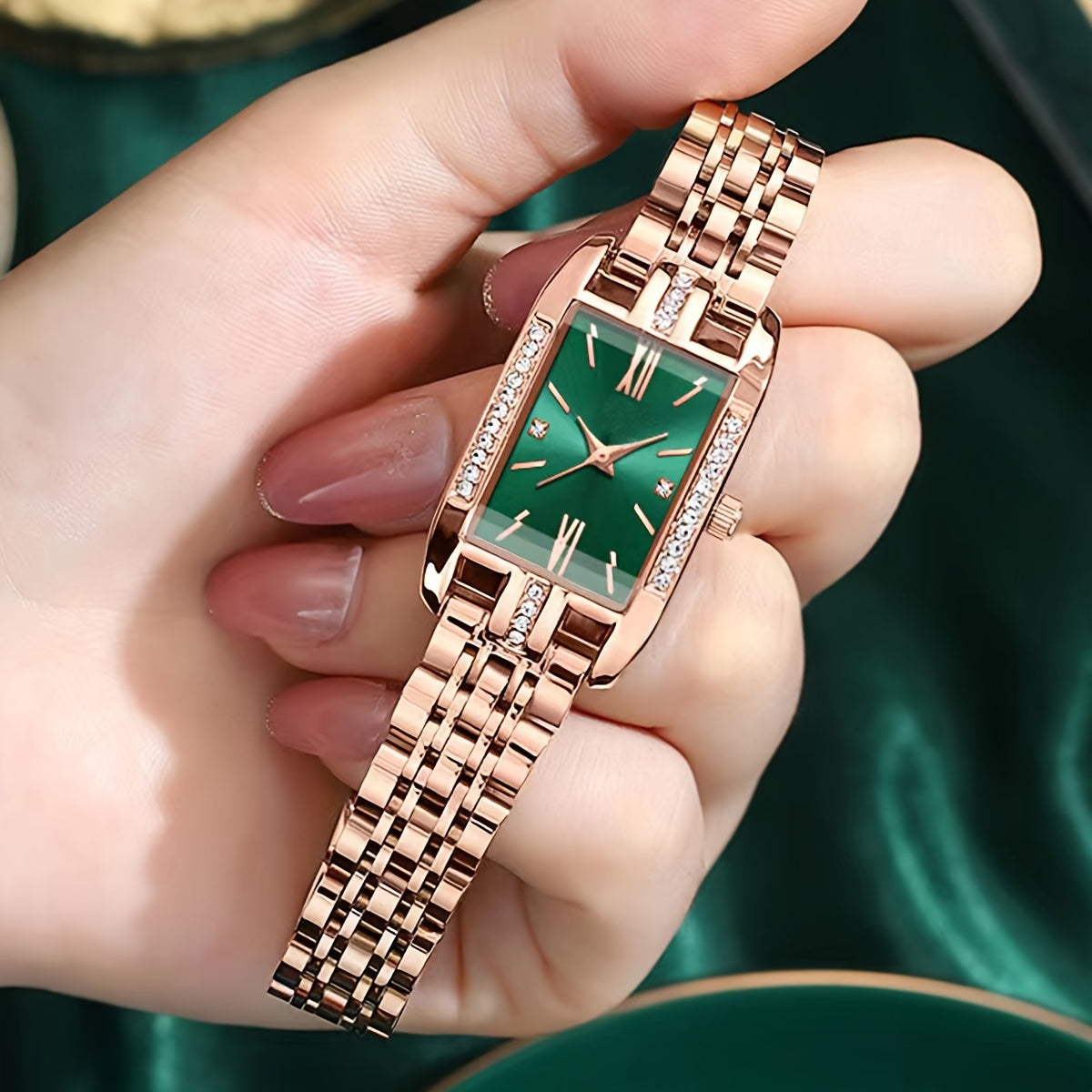 [Bohemian Square Quartz Watch] Luxurious Bohemian Square Quartz Watch - Elegant Zinc Alloy Dial, Stainless Steel Bracelet With Rhinestones For Women