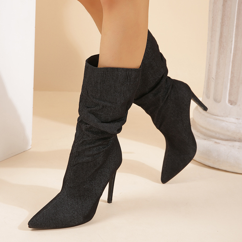 Boots for Women Stiletto Heel Pointed Toe Long Boots High Heel Mid Calf Boots