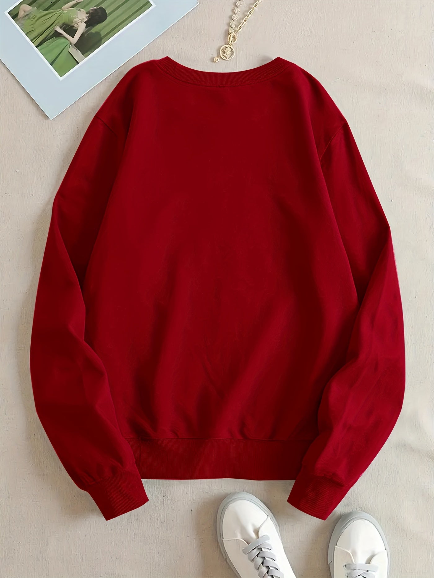 Boston Print Crew Neck Sweatshirt, Casual Long Sleeve Sweatshirt For Spring & Fall, Women's Clothing