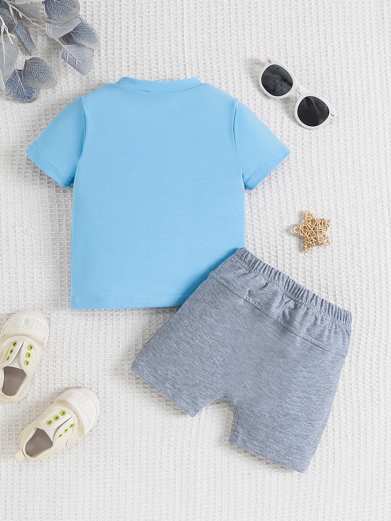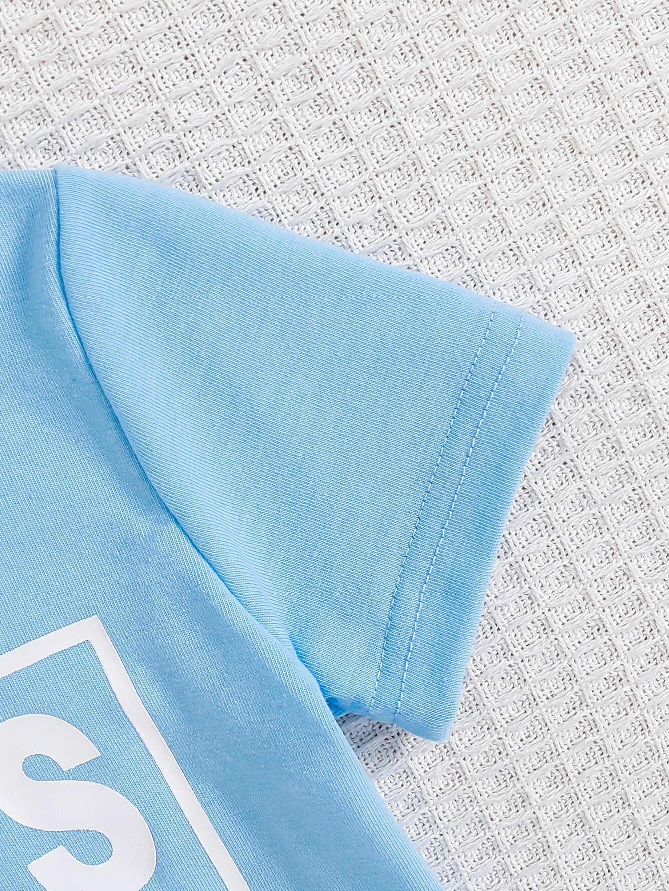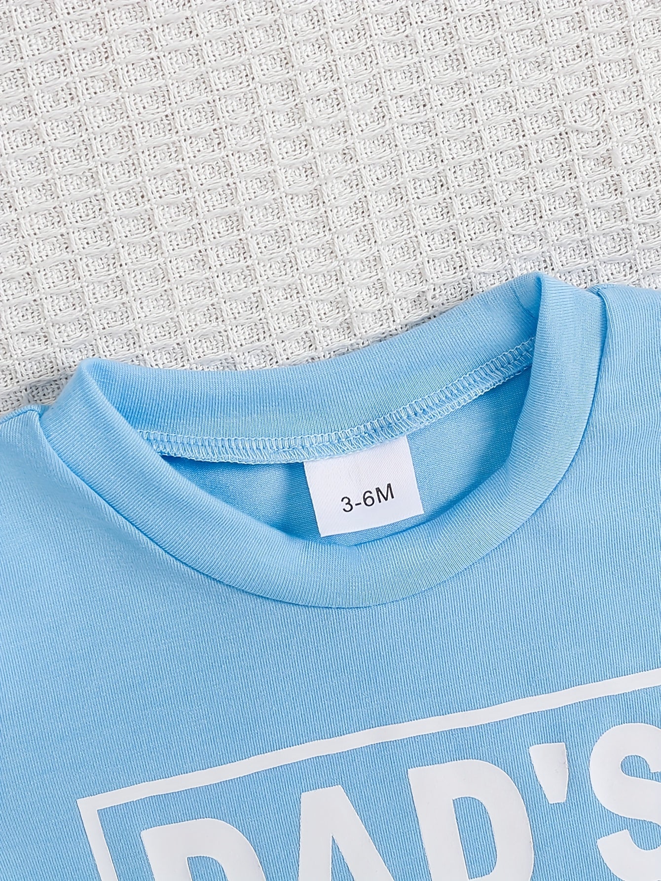 Boys' "DAD's LITTLE DUDE" Casual Outfit - Light Blue Short Sleeve Tee & Gray Drawstring Shorts Set, Comfortable Polyester Blend, Perfect for Summer, Kids Daily Clothing|Casual Kids Fashion|Easy Movement Wear, Perfect for Outdoor