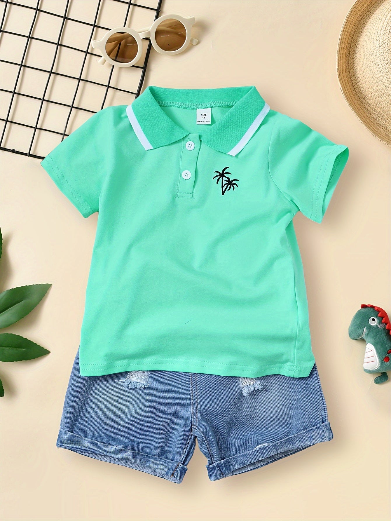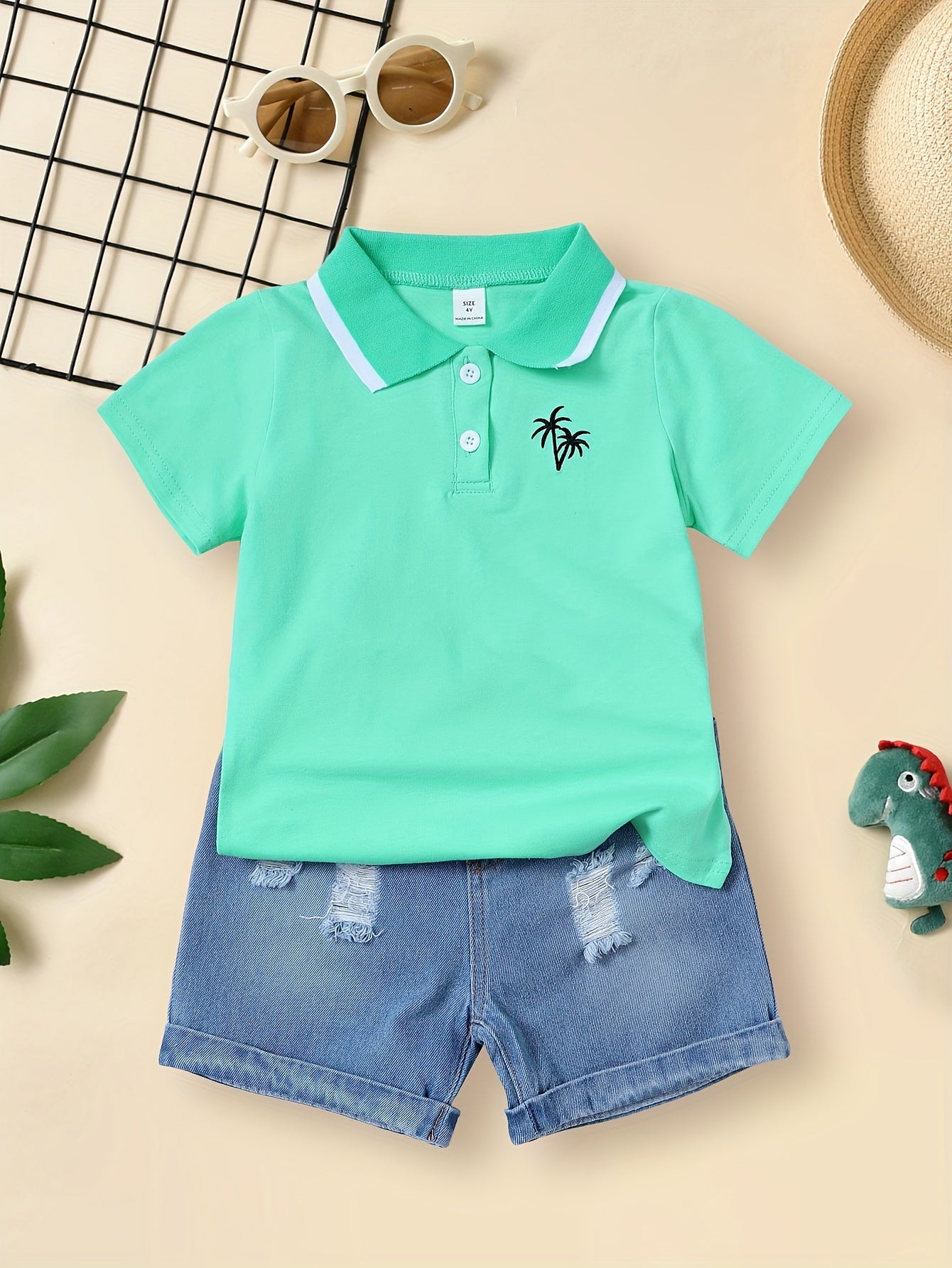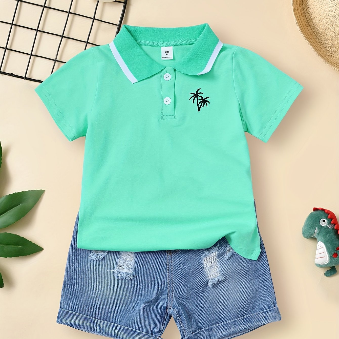 Boy's Palm Tree Pattern Cute Lapel Shirt, Casual Short Sleeve Breathable Comfy Versatile Top Shirt For Summer Holiday