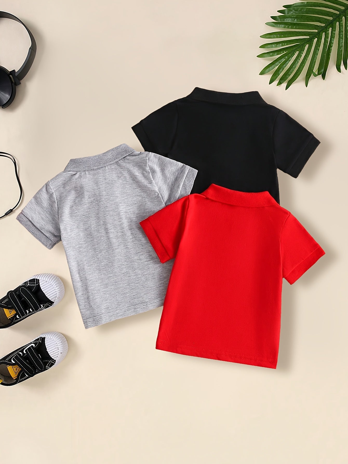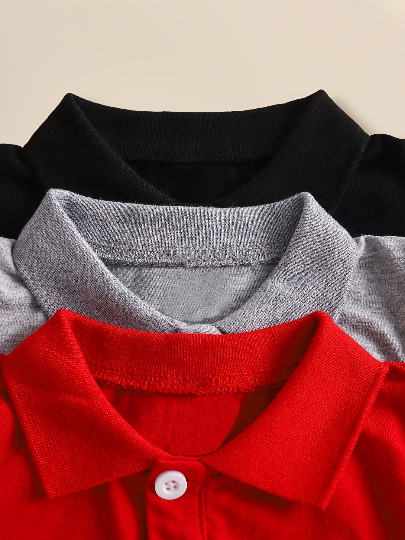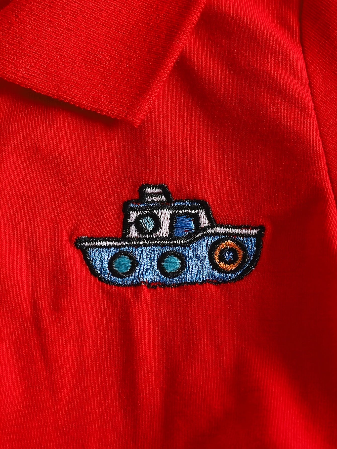 Boys' Summer Fashion Short-Sleeve Top Sliky Fiber Fabric Comfortable Material Cartoon Pattern Embroidery Ribbed Collar Red Black Gray Three-Piece Set for Outdoor Outings