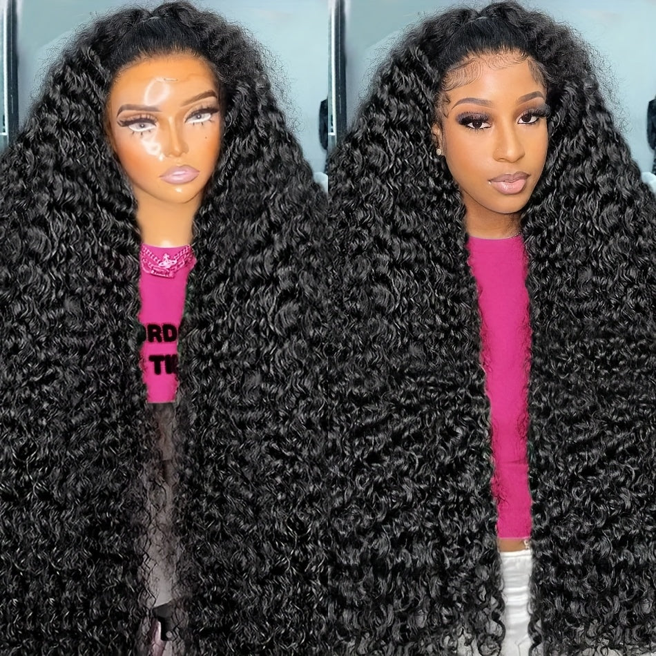 Brazilian Deep Curly Lace Front Wigs Pre-plucked Human Hair Wigs 4x4 HD Lace Closure Wigs 100% Real Glueless Wigs Friendly For Beginners 200% Deep Wave Lace Wigs