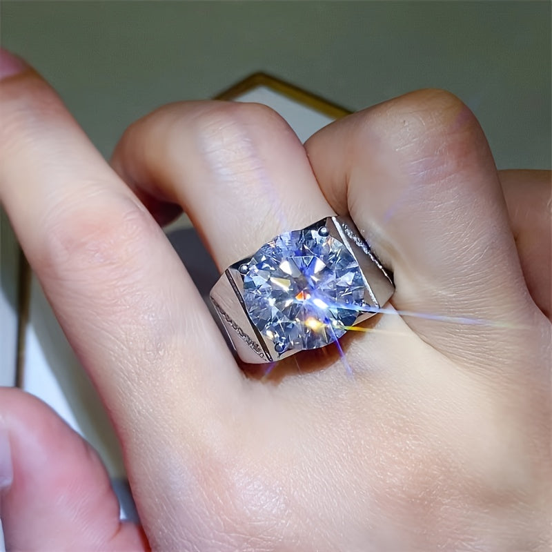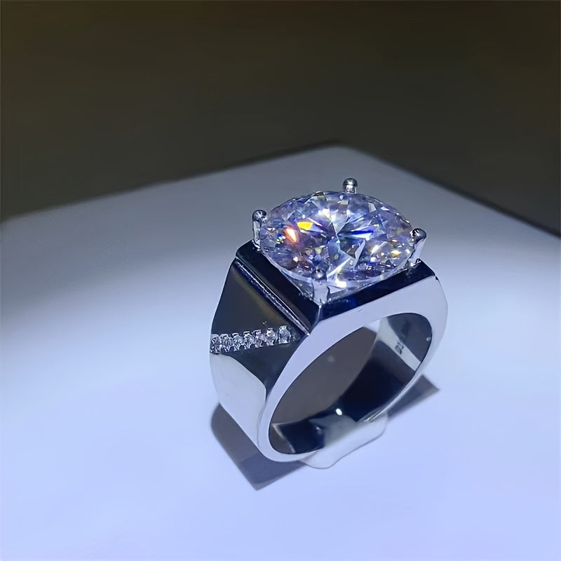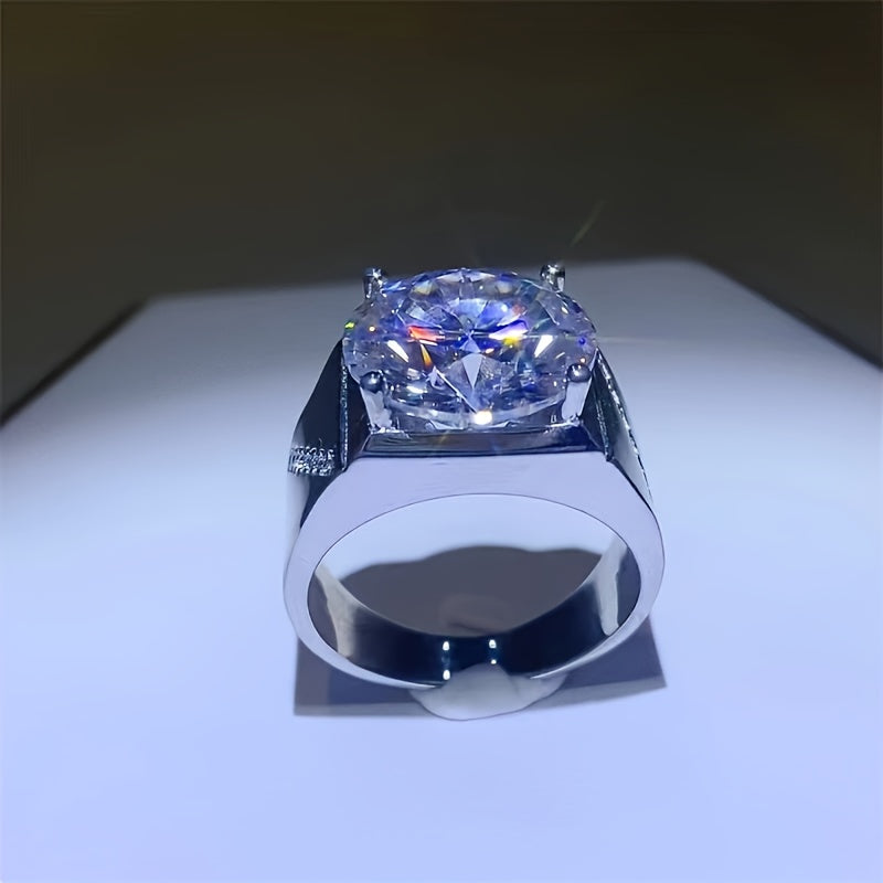 BRILLAR - Elegant 10 Carat Moissanite Ring for Men, S925 Silvery - Fashion Accessory for Daily Wear & Special Occasions, Perfect for Anniversaries, Birthdays, and Holidays