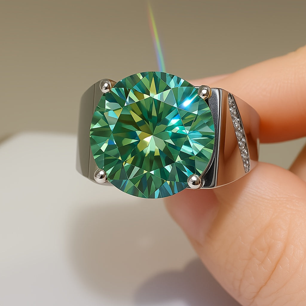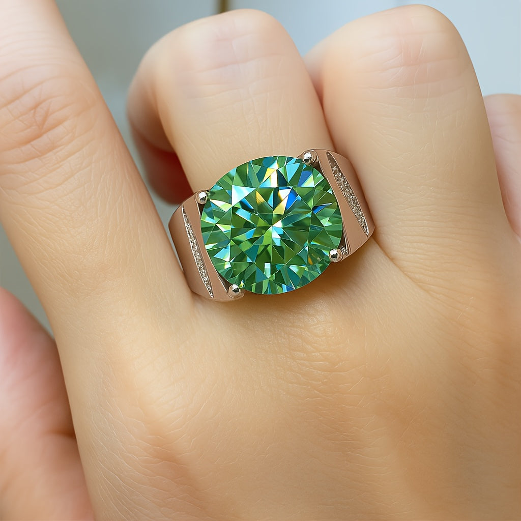 BRILLAR Men's Ring 10 Carat Green Moissanite 18K gold plated Plated, Elegant Modern Design Durable Jewelry Gift for Him - Valentine's Day, Birthdays, Anniversaries, Father's Day, Anniversary Present, Contemporary Fashion, Premium Accessory, Designer Acces
