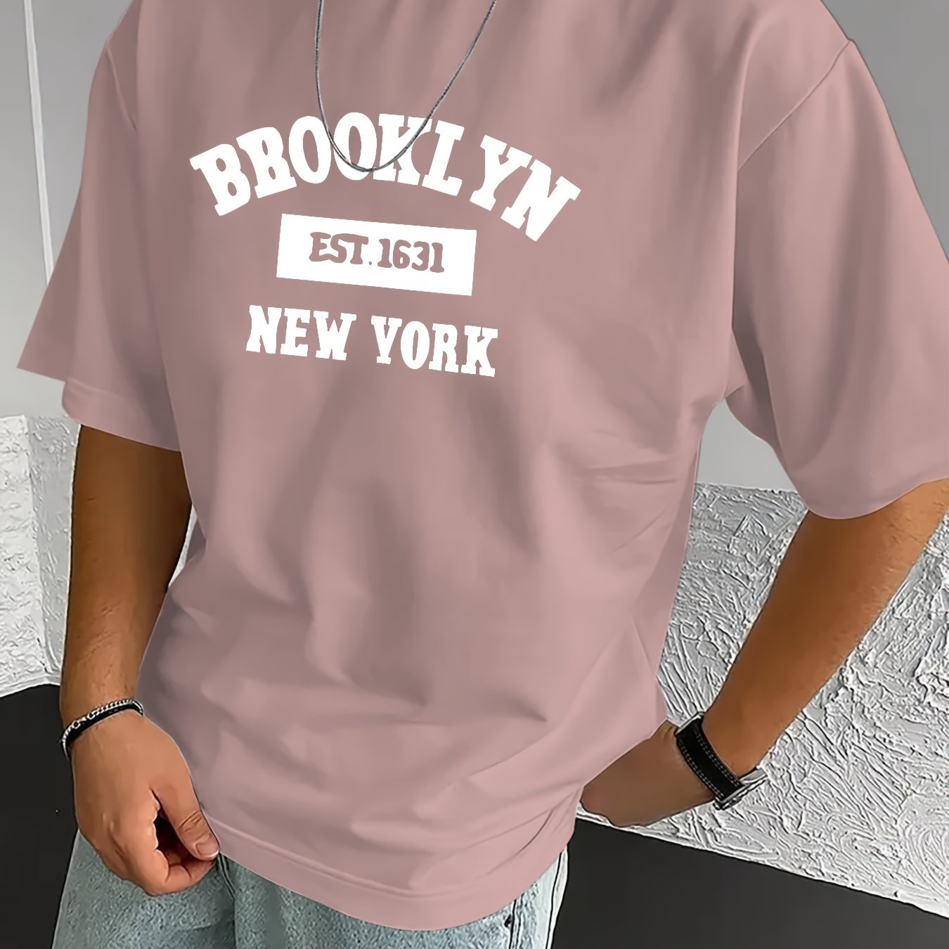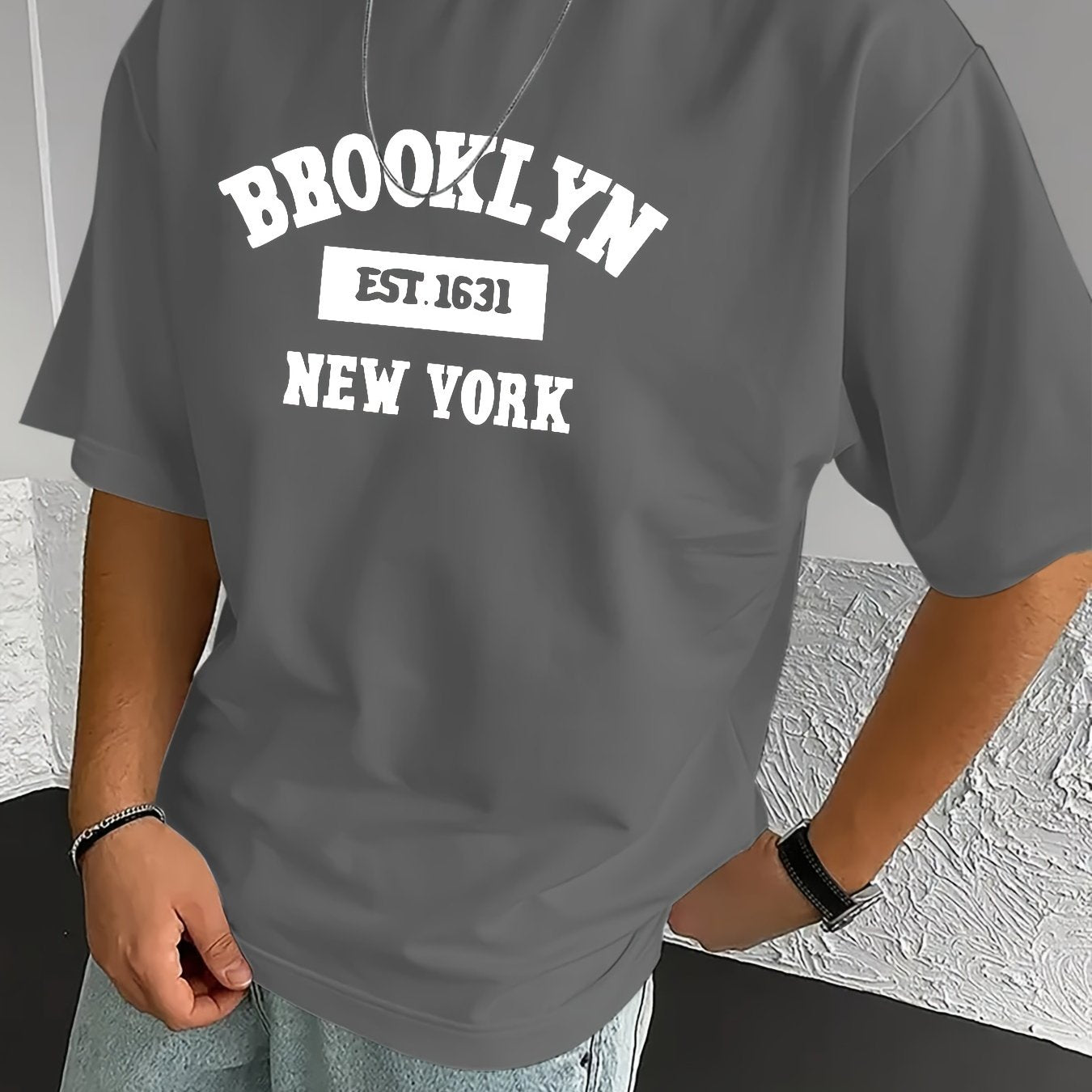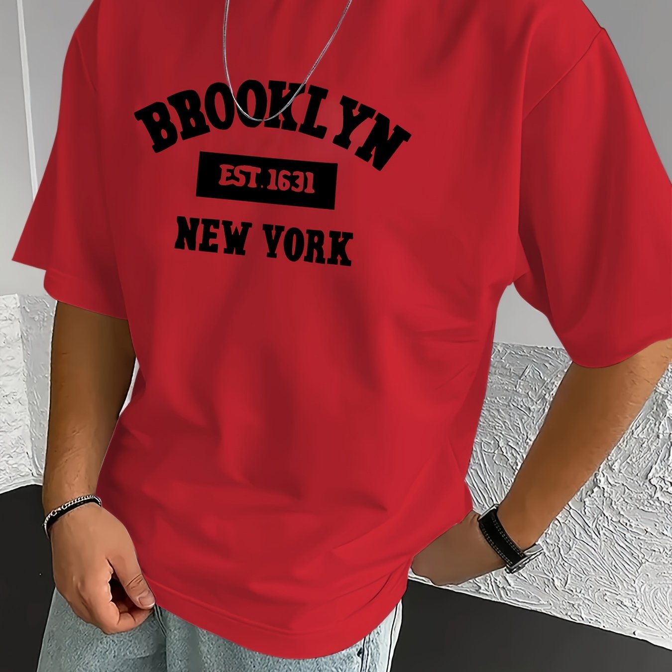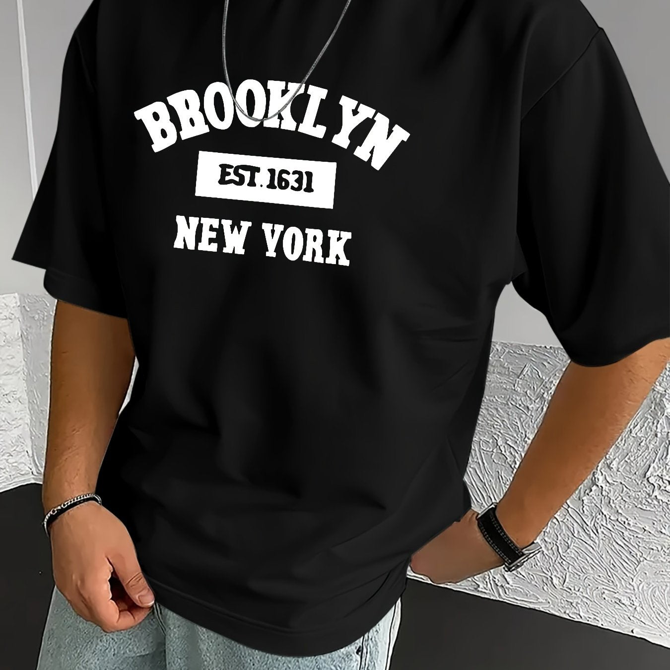 Brooklyn New York EST. 1631 Graphic Print T-Shirt for Men - Polyester Blend Casual Crew Neck Tee with Slight Stretch, Summer Knit Fabric Top by MBDMBD