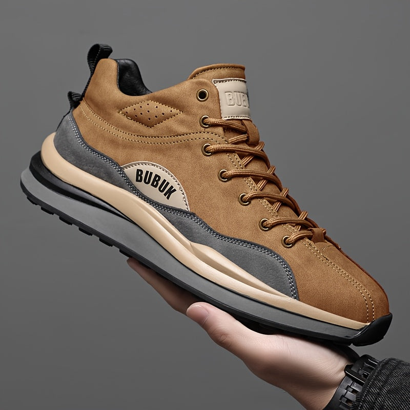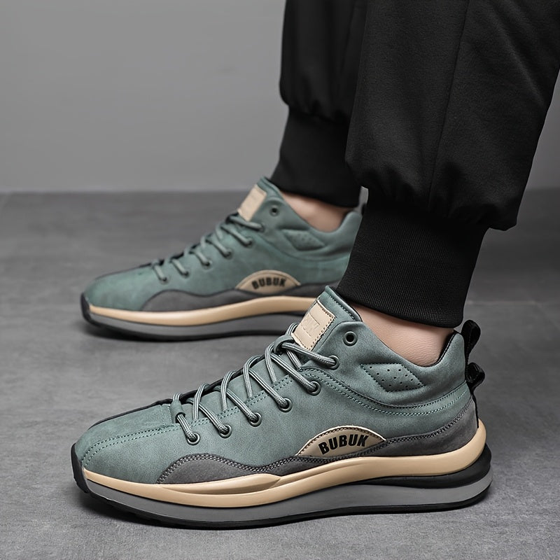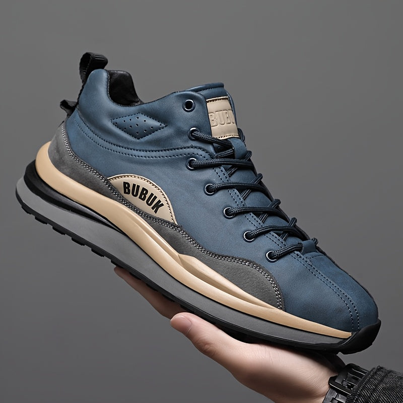 BUBUK Men's Navy Blue Mid-Top Lace-Up Running Shoes - Durable PU Upper & Rubber Sole, Breathable Fabric Lining, Cushioned Comfort for Hiking, Business Casual, Outdoor Walking, Outdoor Walking Footwear | Stylish Laceup Shoes | Breathable Lined Interior, BU