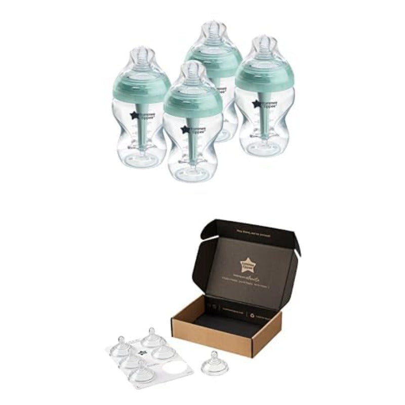 Bundle of Tommee Tippee Advanced AntiColic Baby Bottles 9oz 4 Pack and Advanced AntiColic Bottle Nipples (Medium Flow 3 Months+ 6 Pack)