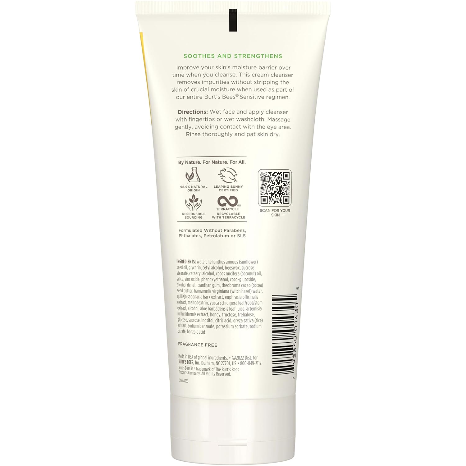 Burt's Bees Gentle Cream Cleanser with Aloe for Sensitive Skin, 98.9% Natural Origin, 6 Ounces
