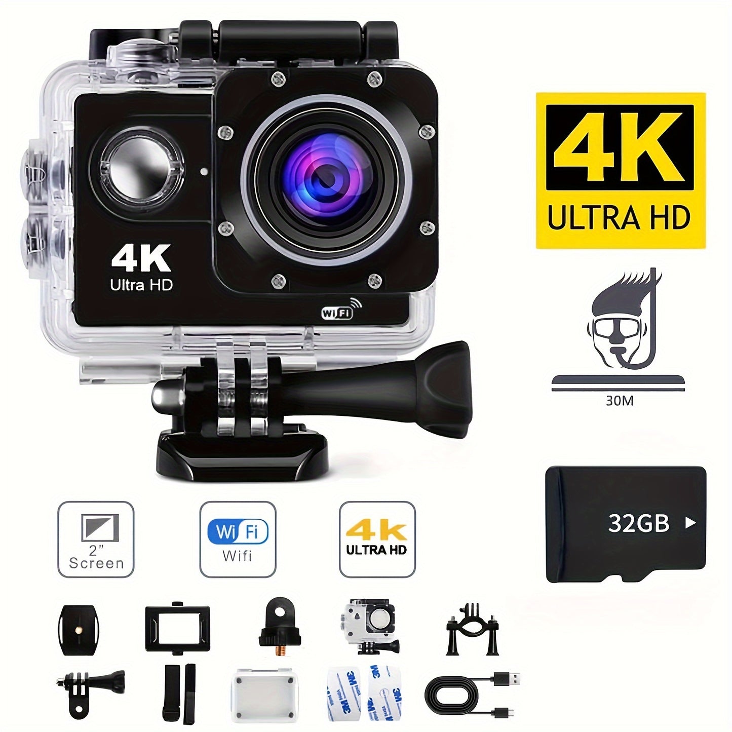 Caméra d'action 4K30FPS - Caméra sous-marine ultra haute définition, caméra de sport d'extérieur avec Wifi Envoi carte mémoire 32 Go, avec objectif grand angle et kit d'accessoires de montage.