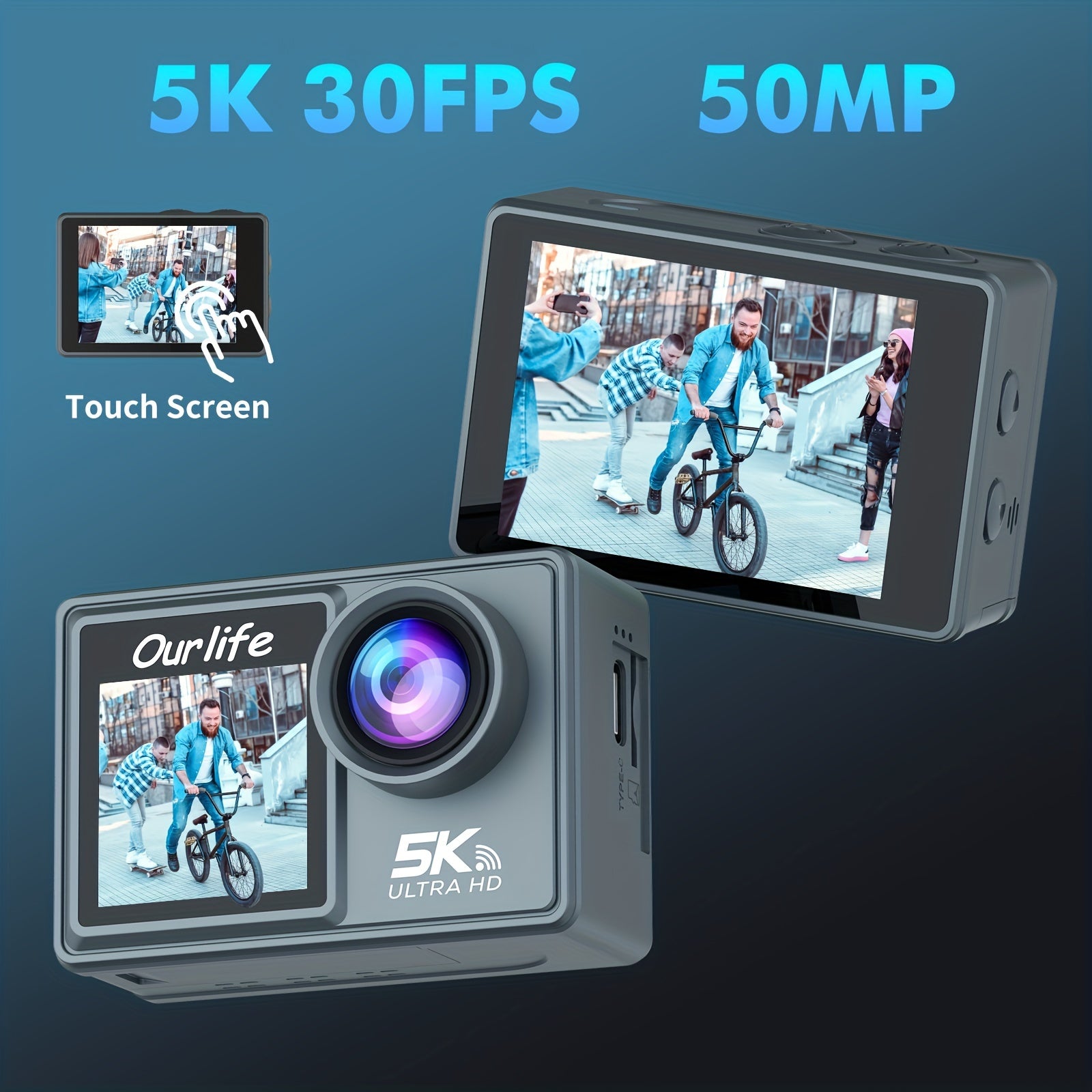 Caméra d'action 5K Caméra sous-marine Microphone externe Étanche 40M Caméra Ultra HD 50MP 170 ° Grand angle ultra WiFi Caméscope