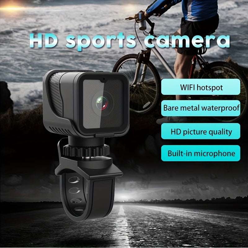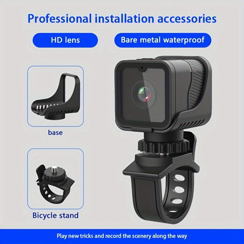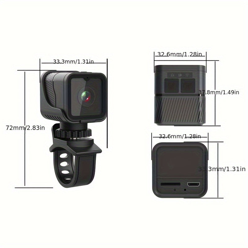 Caméra d'action mini HD 1080p, contrôle tactile, alimentée par batterie, lithium rechargeable 900mAh, connectivité WiFi avec application, support auto-adhésif, non étanche, pour caméra de tableau de bord de moto et de vélo