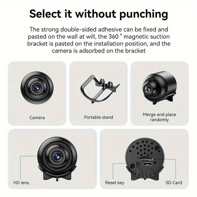 Caméra HD Intelligente Sans Fil 1080P avec Vision Nocturne, Détection de Mouvement, Objectif Grand Angle & Télécommande Mobile – Caméra de Sécurité Compacte Intérieure/Extérieure pour Jeunes, Animaux, Surveillance de Nanny