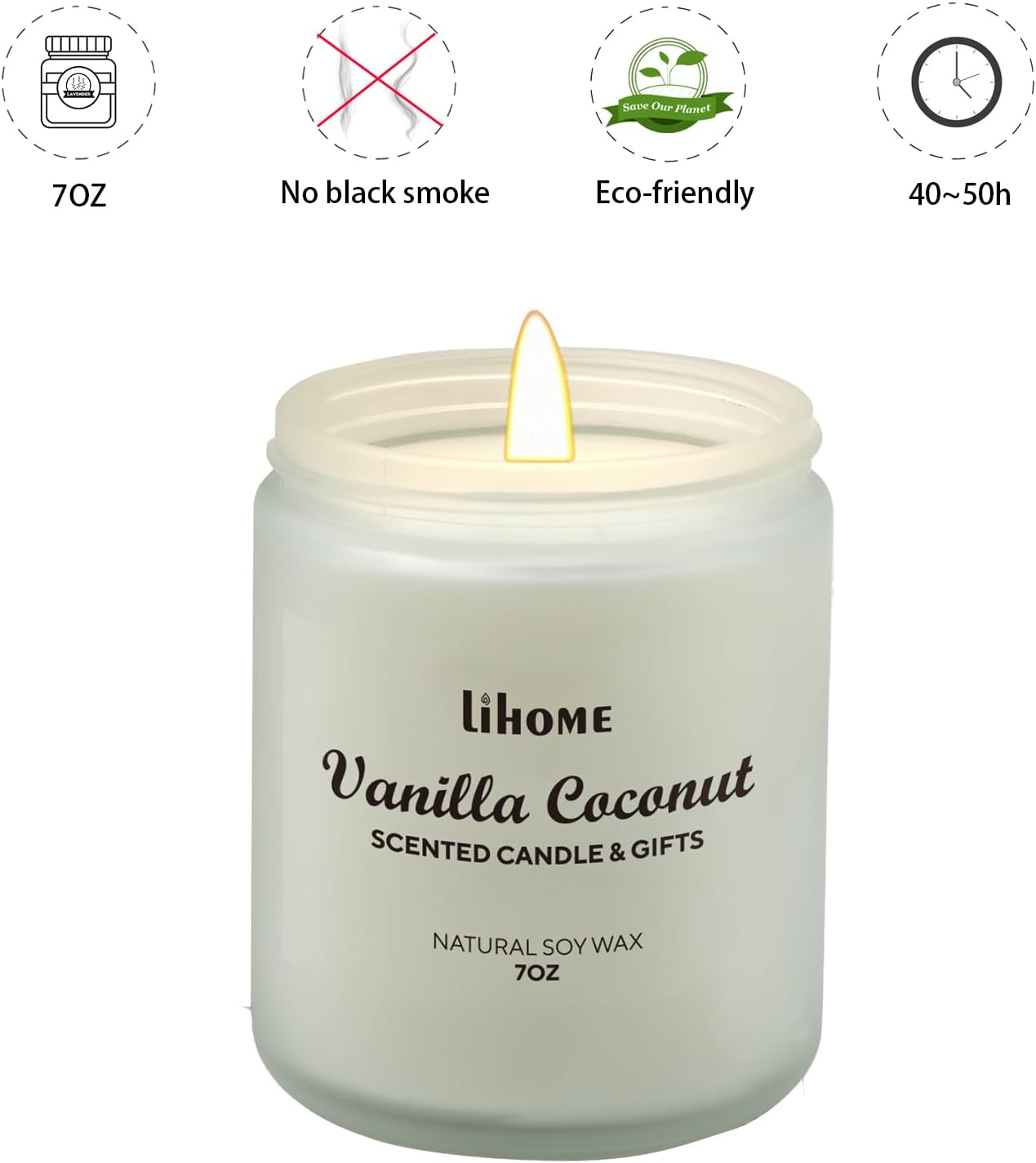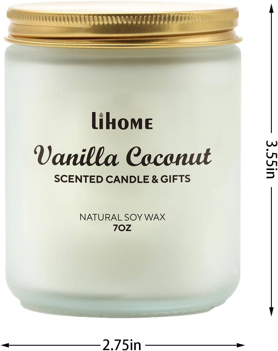 🎁 CANDLE INFO - Scent notes: Vanilla Coconut Candles | Jar Size: 3.55 x 2.75 x 2.75" | 7oz Net Weight | 40+ Hour Burn Time.