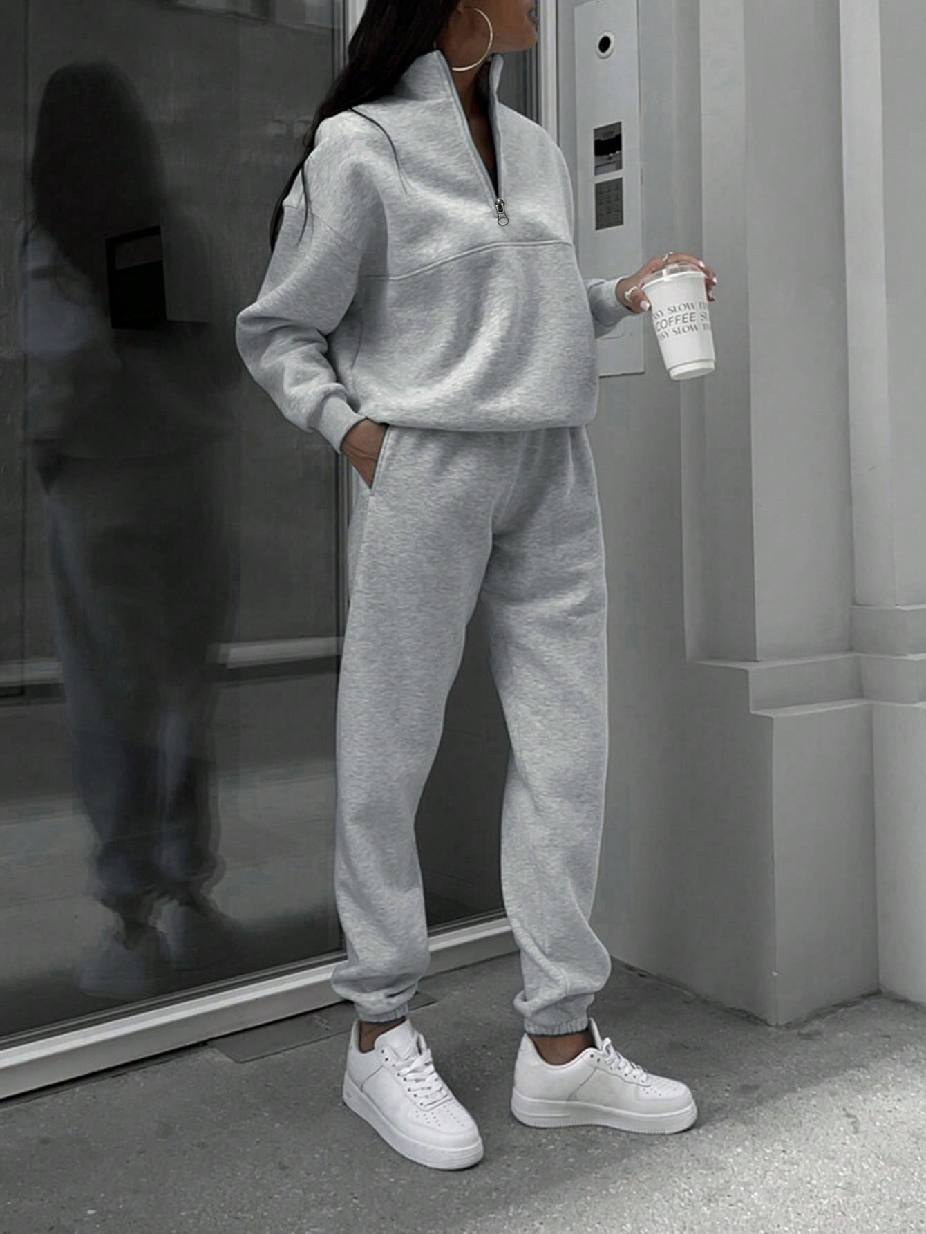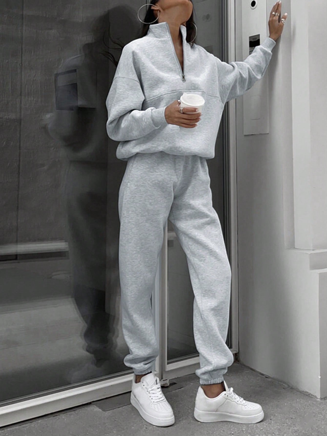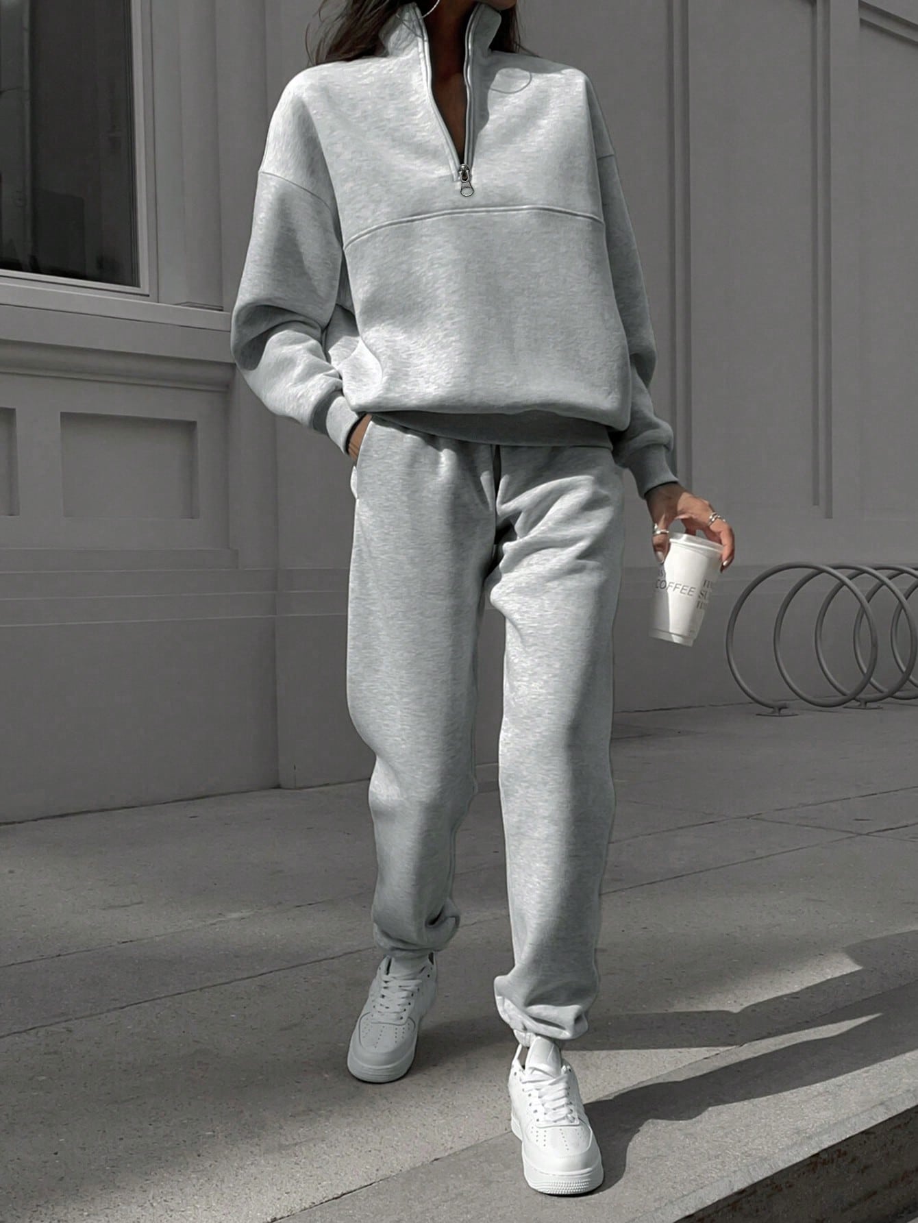 Carly Lawrence INAWLY Women's Half Zipper Hoodie And Jogger Pants Two Piece Set
