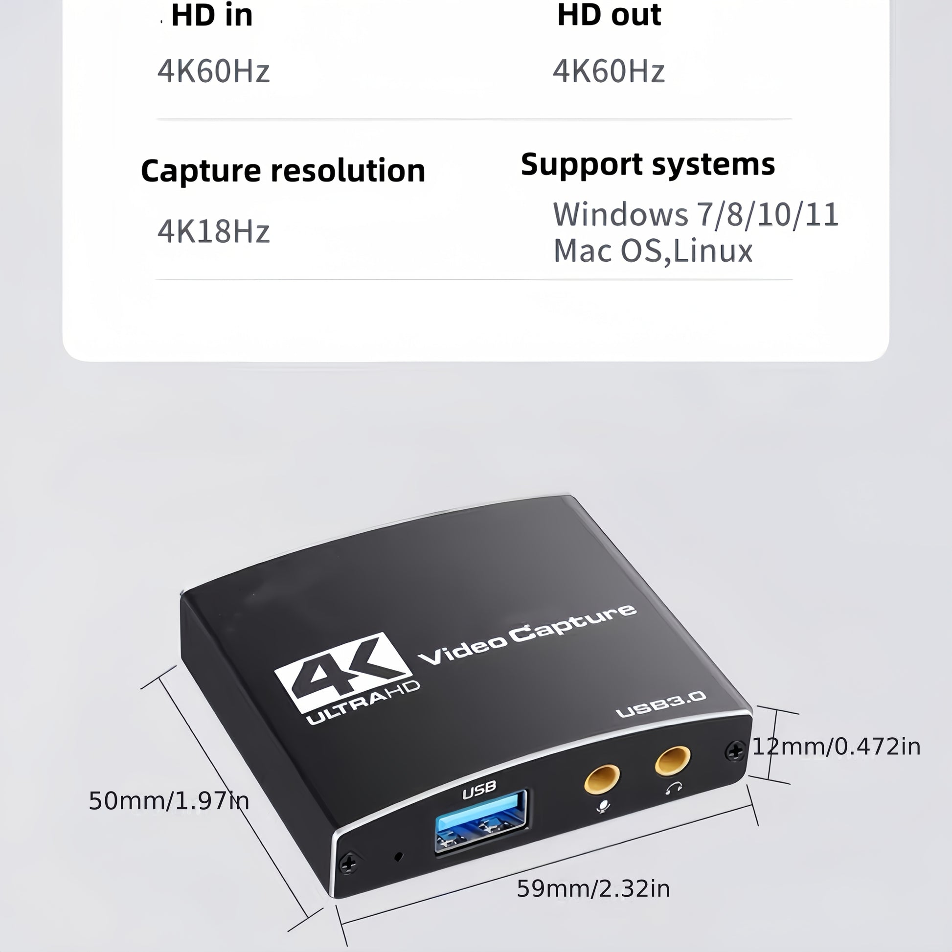 Carte de capture, carte de capture audio vidéo, carte de capture vidéo USB C/A 3.0 4K@60Hz HD Loop-Out, carte de capture de jeu 1080P 60FPS pour le streaming fonctionne pour Switch/PS5/PC/Caméra