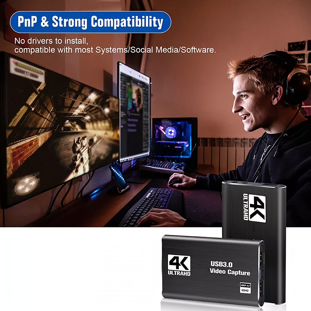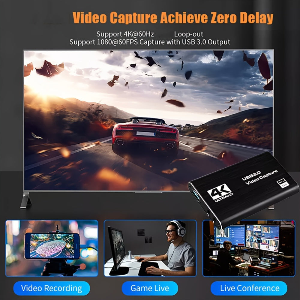 Carte de capture vidéo 4K, carte de capture de jeu, périphérique de capture vidéo 1080P 60FPS, carte de capture USB 3.0 pour le streaming multimédia