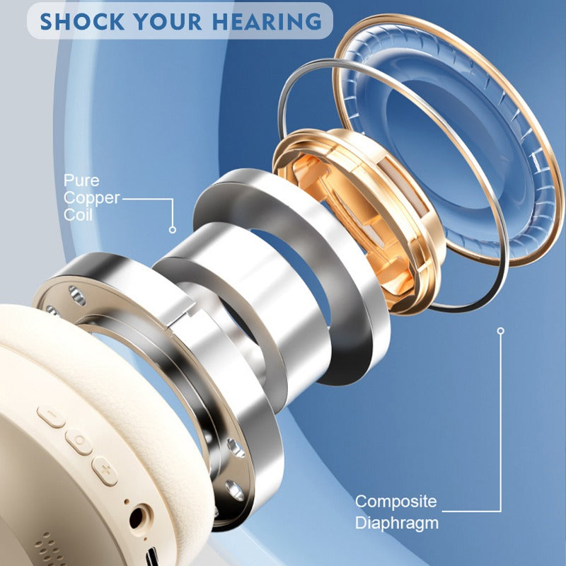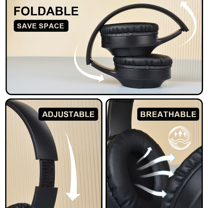 Casque sans fil amélioré, boucles d'oreilles sans fil avec basses profondes, casque pliable léger avec microphone intégré, son stéréo, adapté pour les voyages, les ordinateurs de bureau, les téléphones portables, les casques de jeu