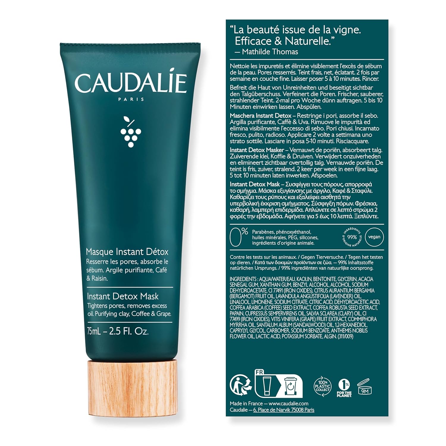 Caudalie Instant Detox Mask Pore Minimizing - Visibly Eliminates Excess Sebum and Visibly Tightens Pores in as Little as 10 Minutes