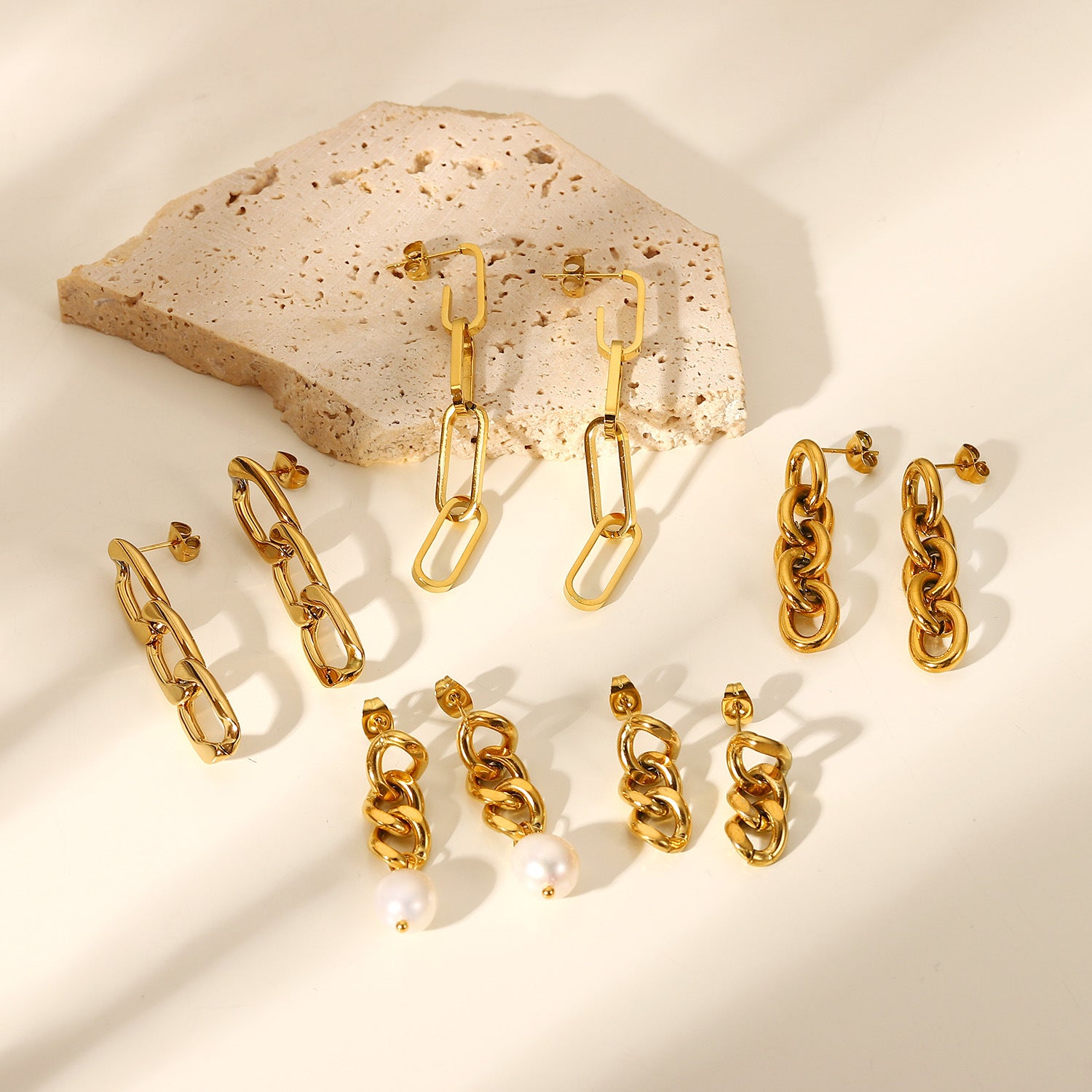 Celebrities Titanium Steel Earrings Long Cuban Chain Earrings Jewelry 18K Gold Stainless Steel Women Earrings Accessories