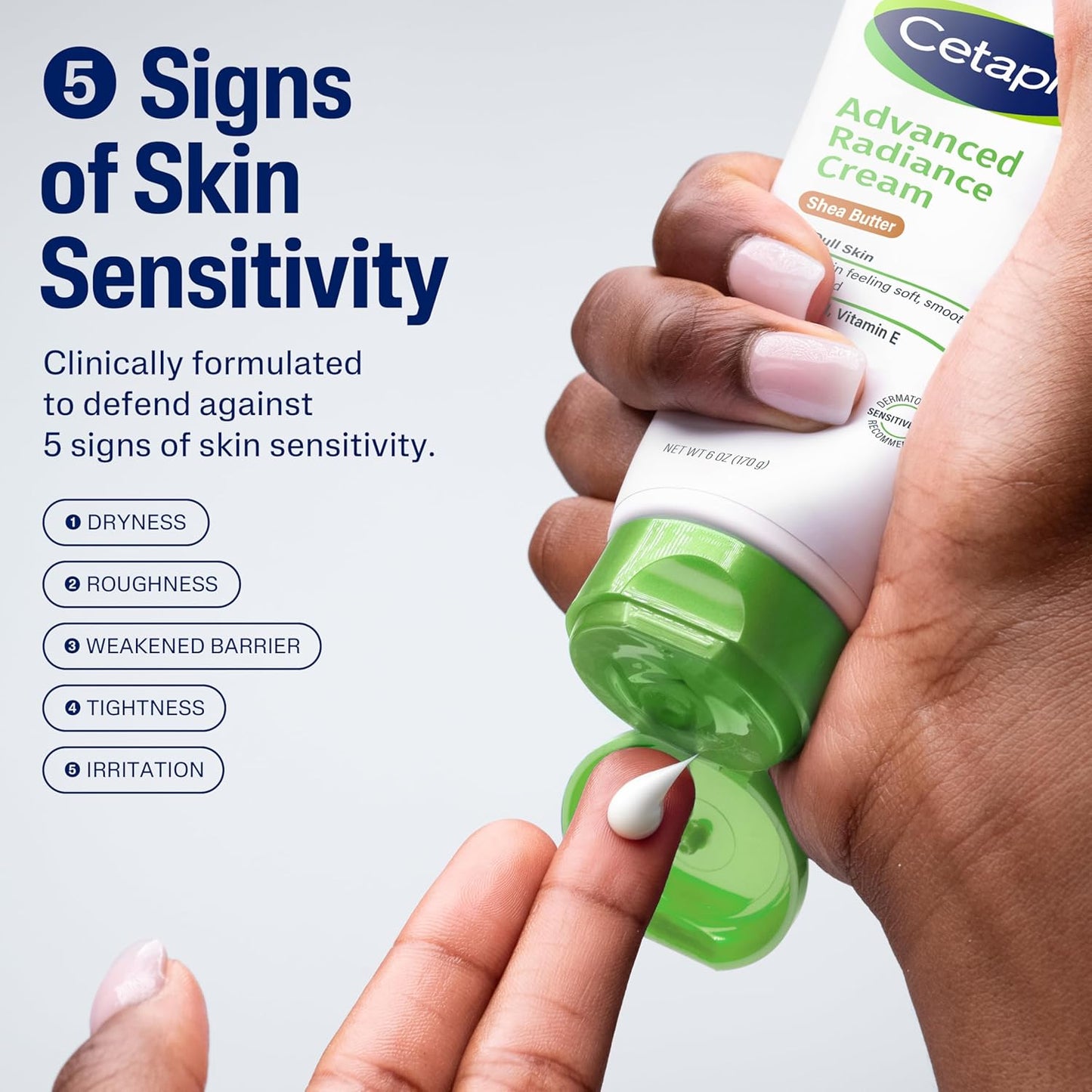 Cetaphil Advanced Radiance Cream with Shea Butter, 6 oz, For Dry, Dull Skin, More Radiant Skin, 48 Hour Hydration, All Skin Tones & Types, Hypoallergenic, Fragrance Free