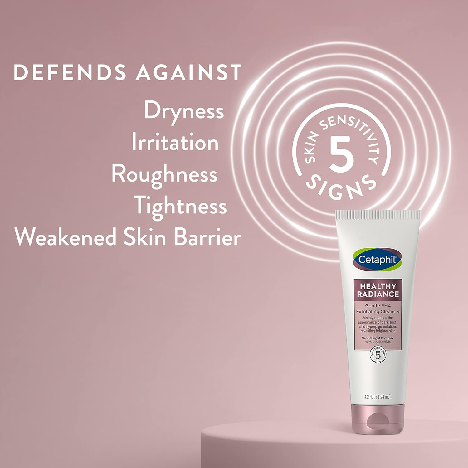 Cetaphil Face Wash, Healthy Radiance Gentle Exfoliating Cleanser, Visibly Reduces Look of Dark Spots and Hyperpigmentation, Designed for Sensitive Skin, Hypoallergenic, Fragrance Free, 4.2oz