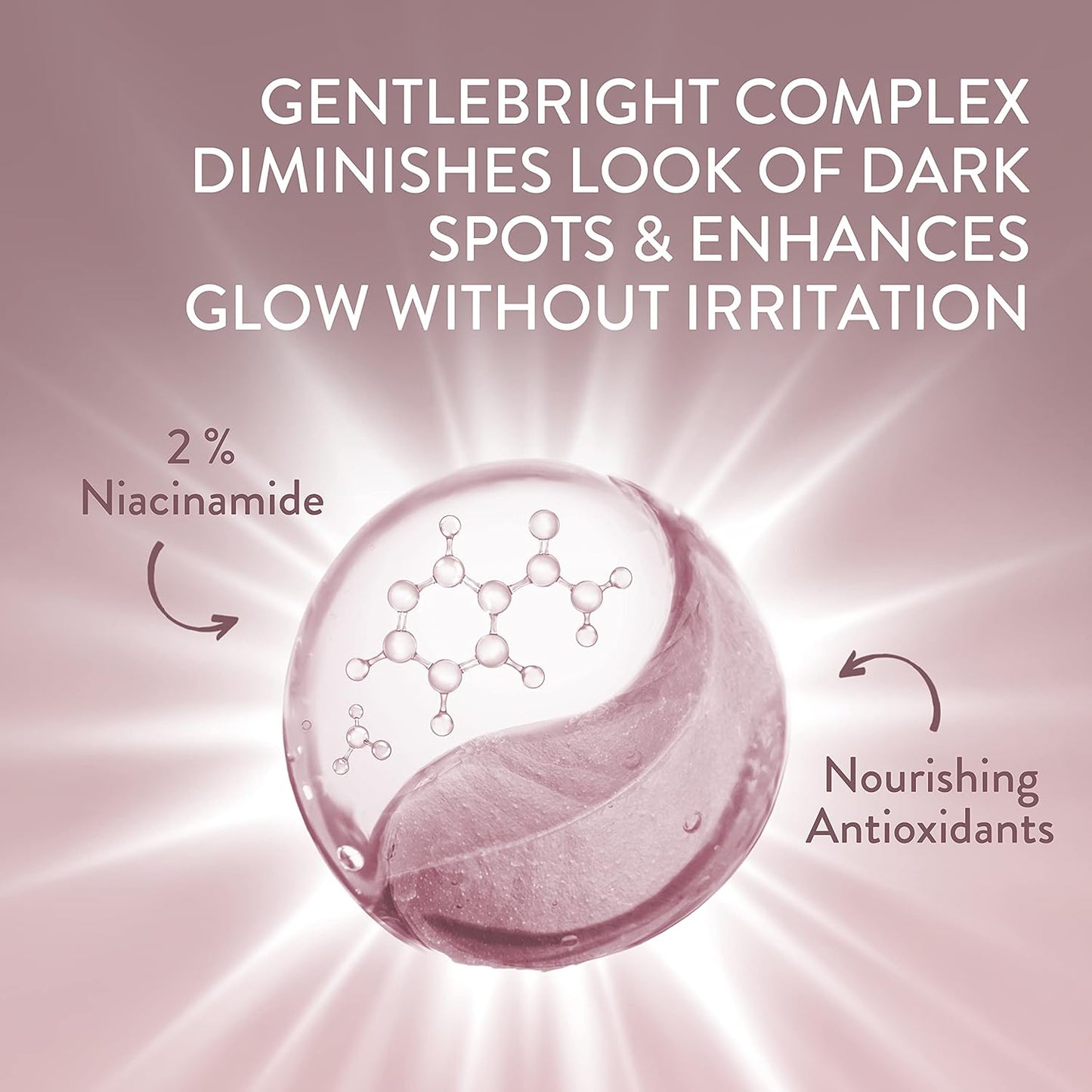 Gentle Bright COMPLEX: Powered by 2% niacinamide (vitamin B3) and nourishing antioxidants to reduce the appearance of dark spots, brown spots, age spots, hyperpigmentation, and post acne marks to even skin tone for a brighter, more radiant complexion