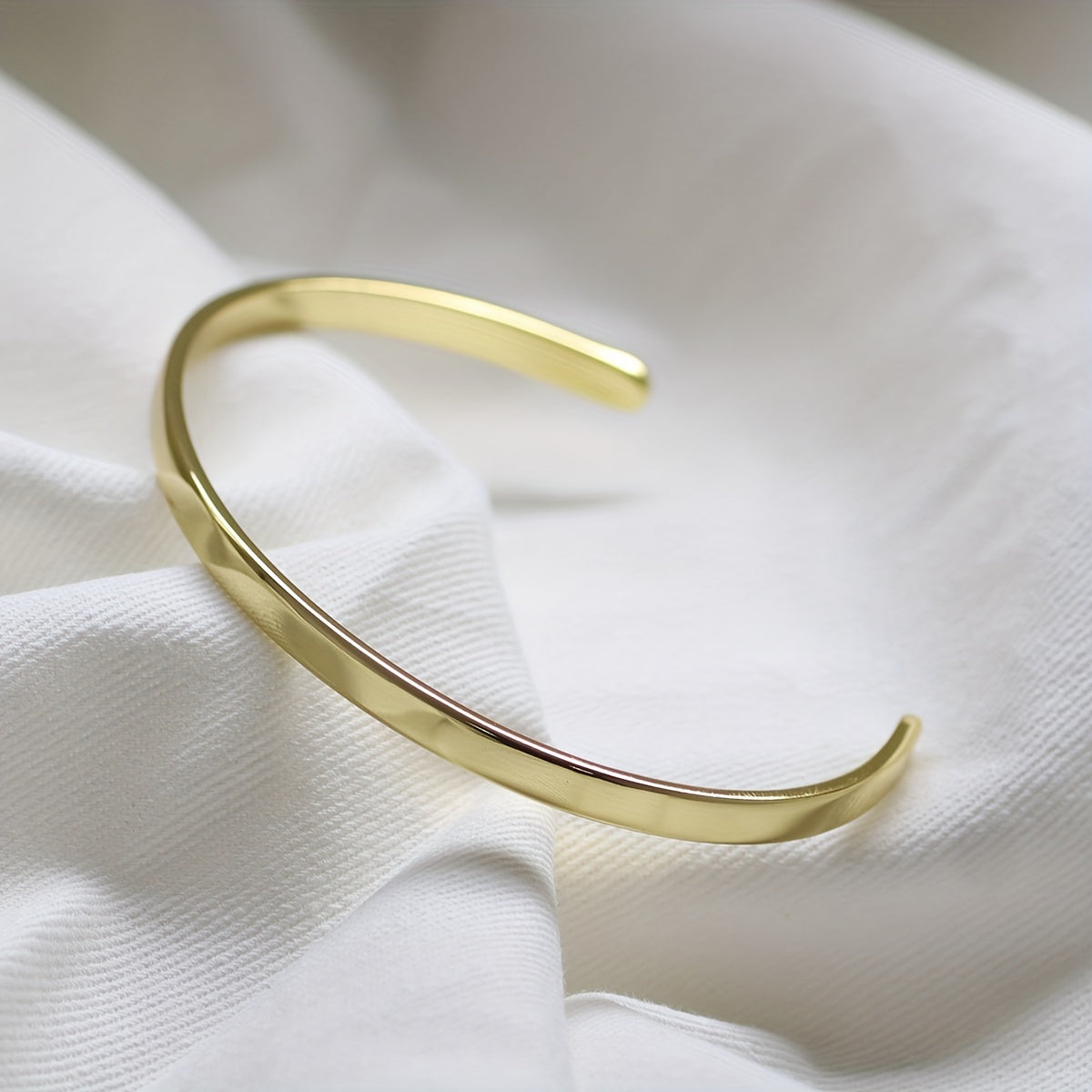 Charm-In 14K Golden Plated Adjustable Open Cuff Bangle For Women | Minimalist Band Bracelet | Thoughtful Friendship Gift | Elegant Golden Jewelry