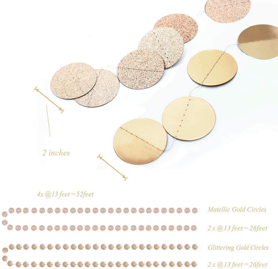 Cheerland Champagne Gold Circle Dot Garland Gold Party Decorations Hanging Banner Streamer Backdrop Decor Wedding Birthday Bday Bridal Bachelorette EID Graduation NYE New Year Eve Party Supplies Decor