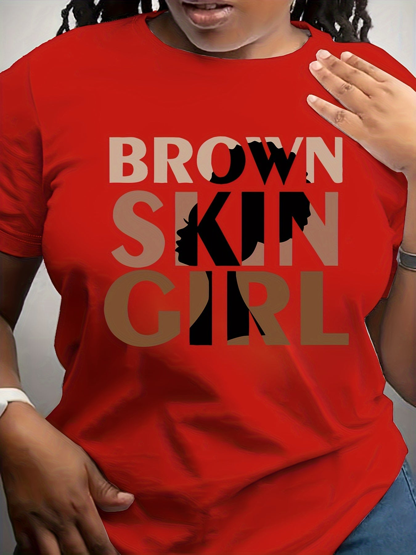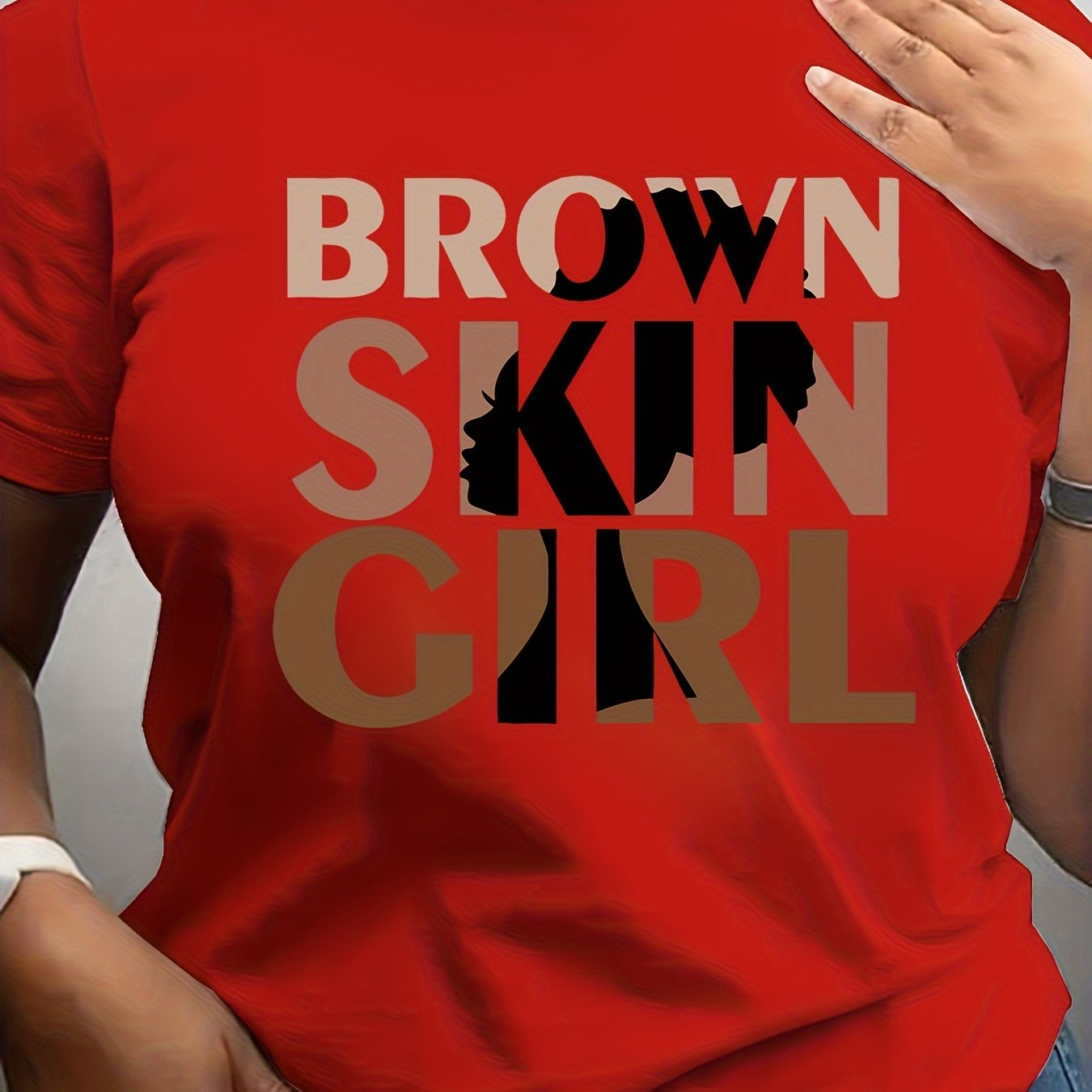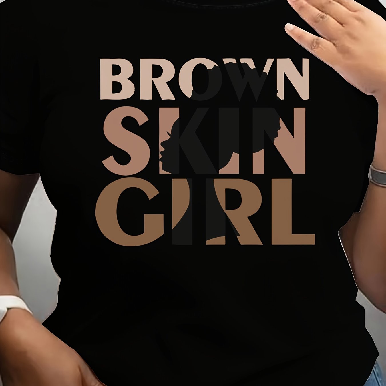 Chic Brown Skin Girl Graphic Tee - Casual Crew Neck Short Sleeve T-Shirt for Women, Breathable Polyester, Machine Washable - For Fashionable Women - Perfect for Casual Wear & Everyday Use - Great Gift for Birthdays & Holidays