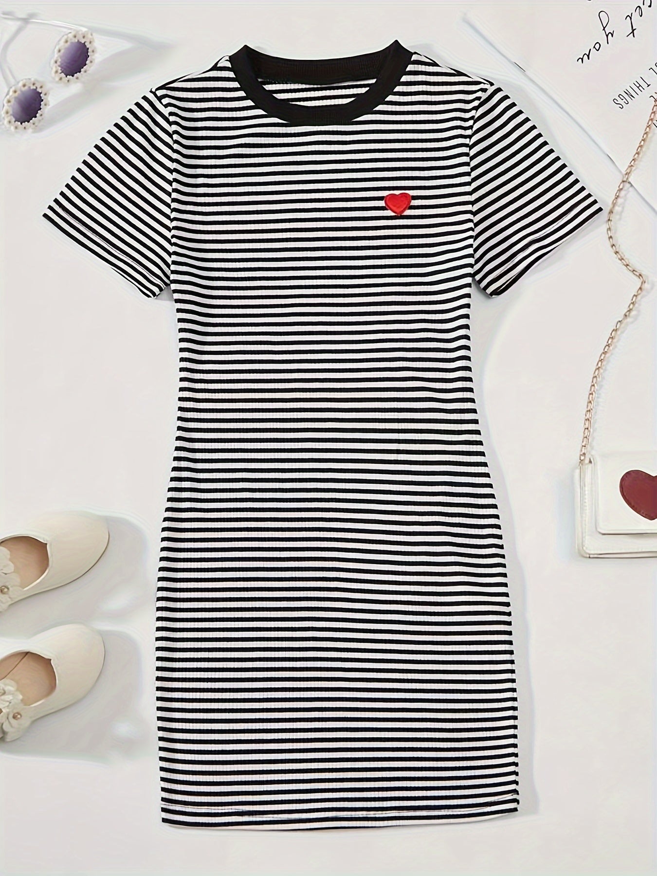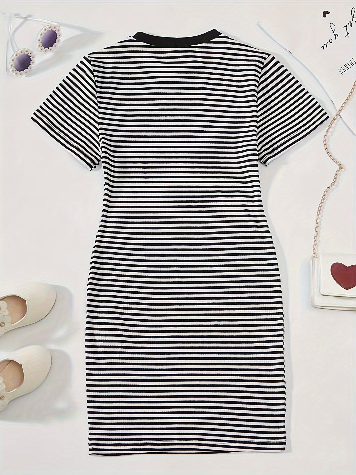 Chic Striped Dress for Girls - Casual Polyester, Machine Washable, Spring/Summer Collection with Contrast Collar