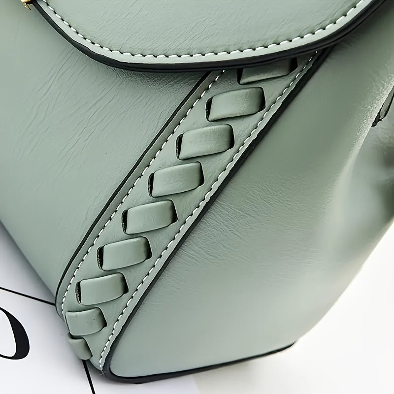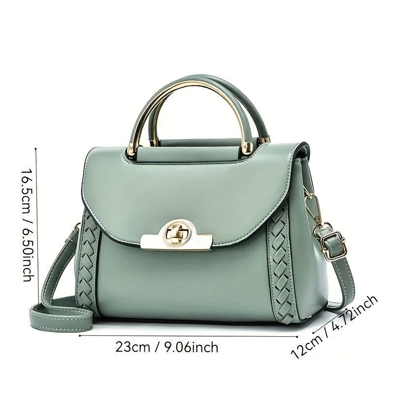 Chic Woven Crossbody Bag with Lock Closure - Small Square Shoulder Bag, PU Material, White/Green/Black, Versatile for Casual & Formal Occasions, Crossbody Purse