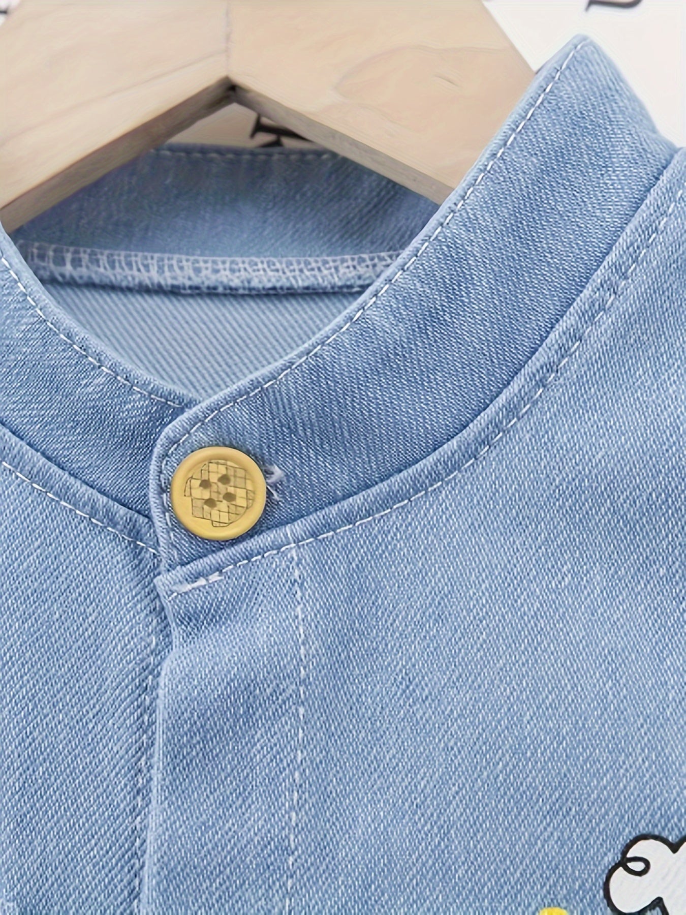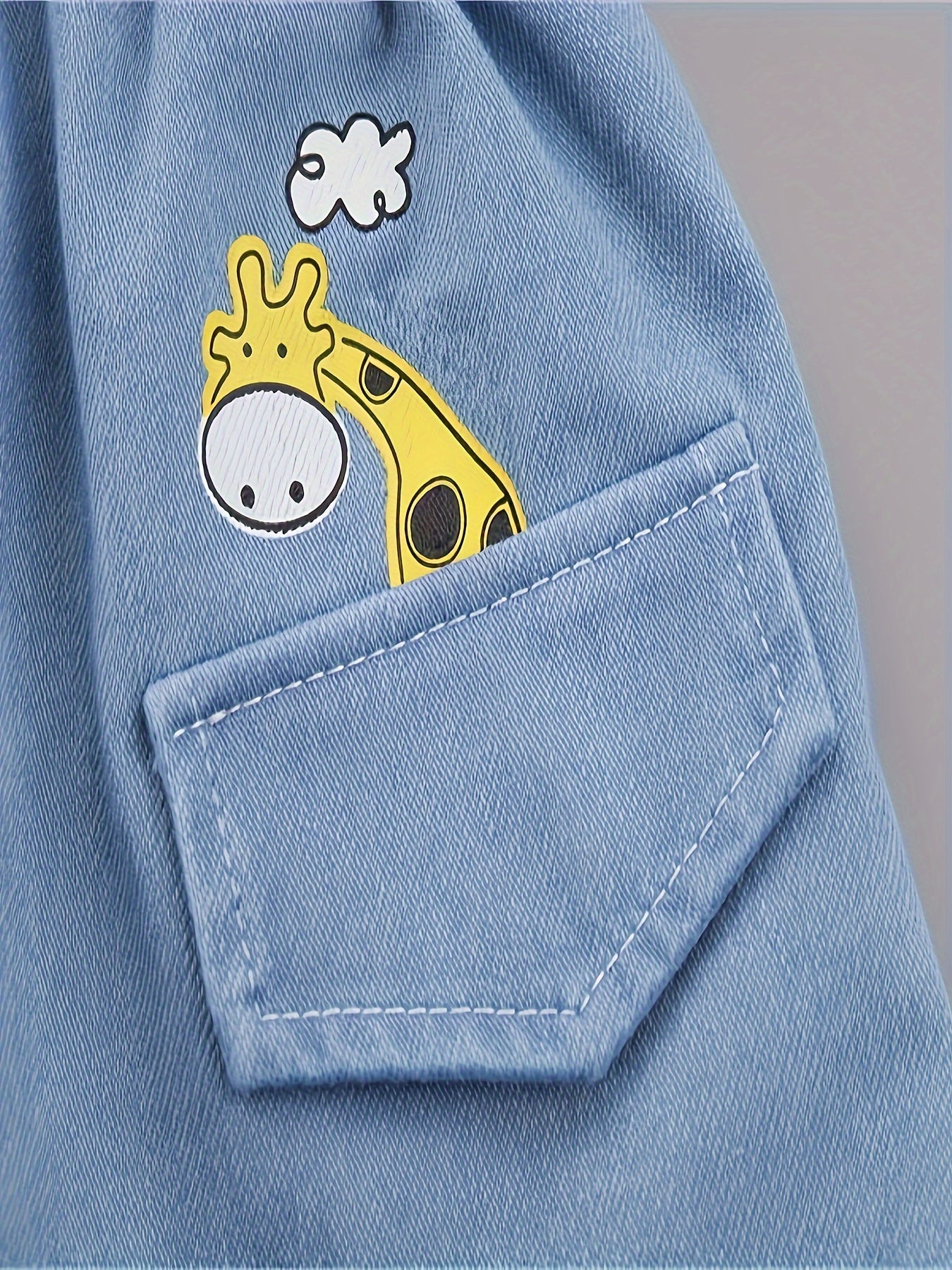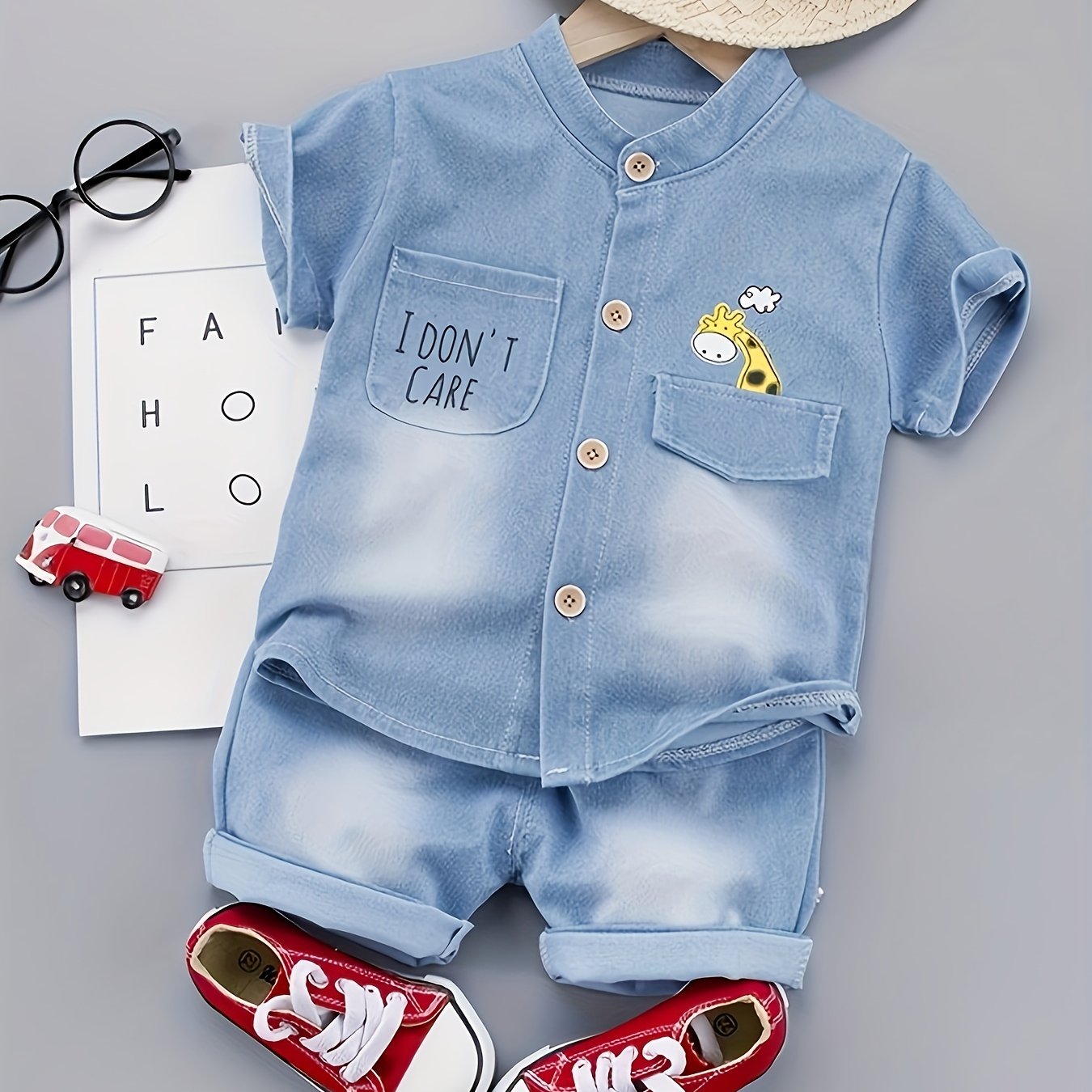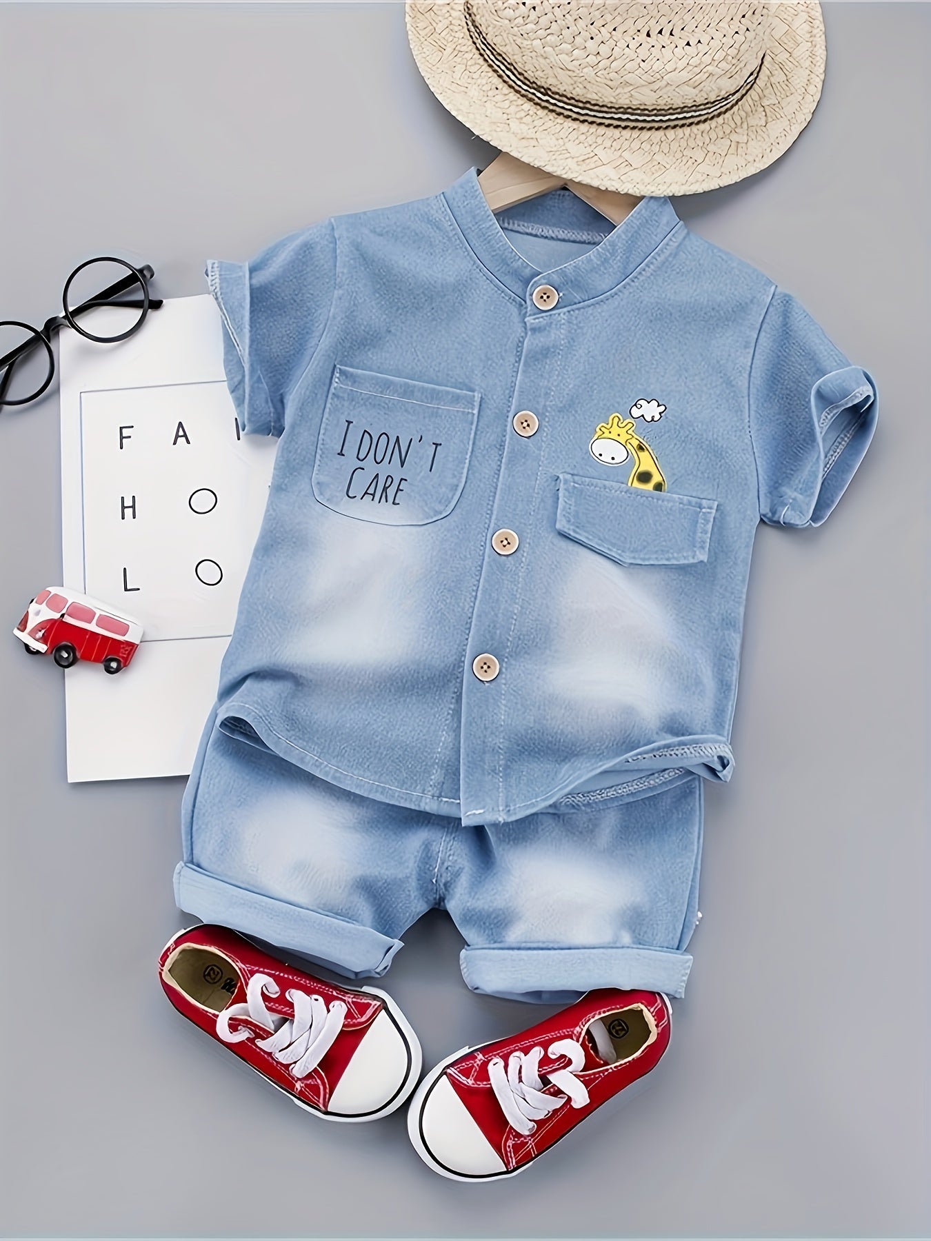 Children's denim short sleeved set cartoon deer printed shirt summer boys and girls short sleeved set