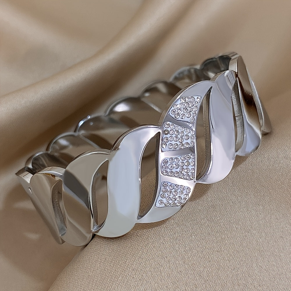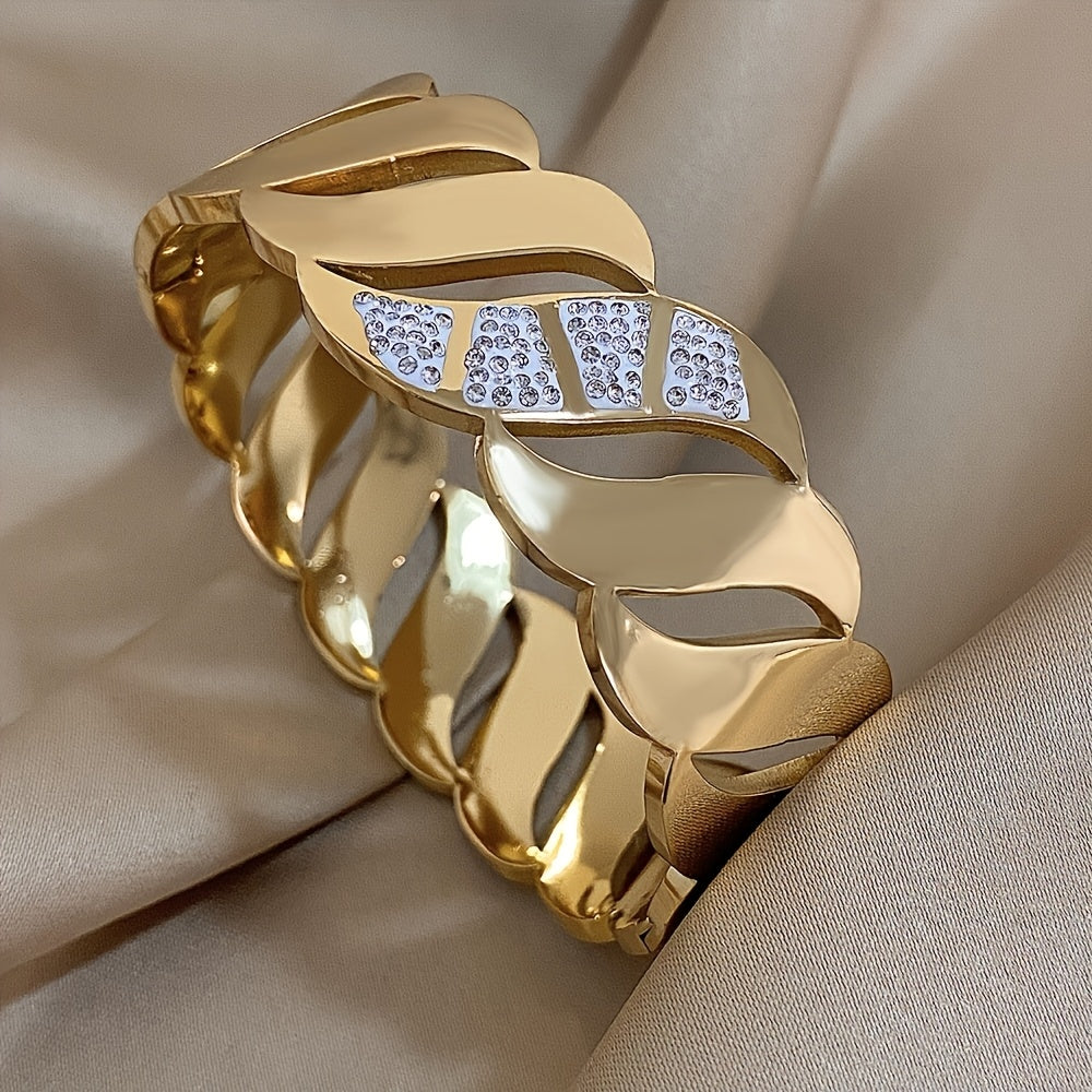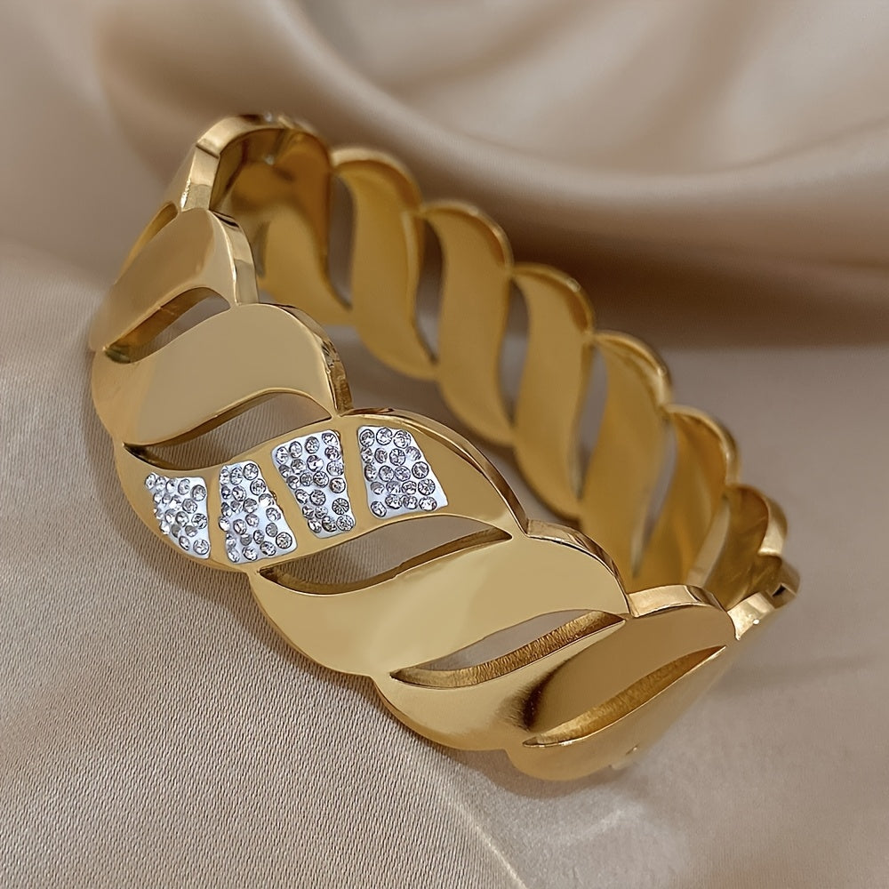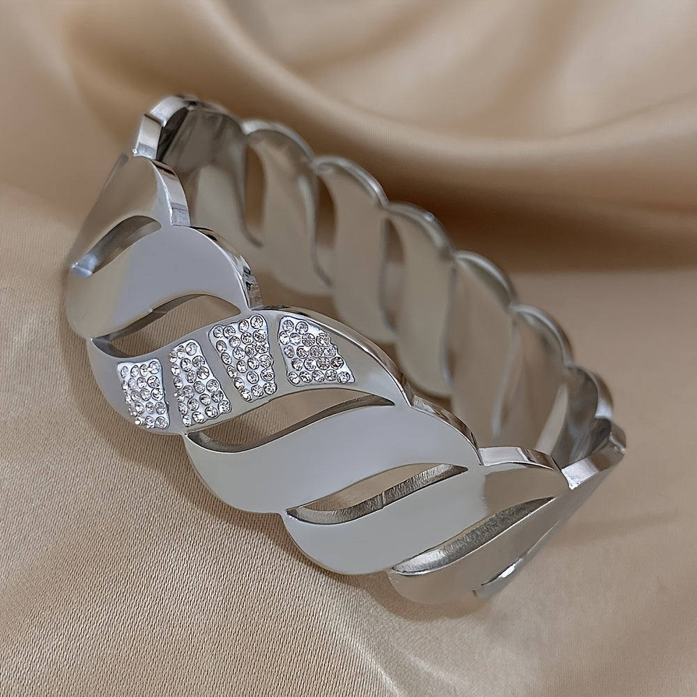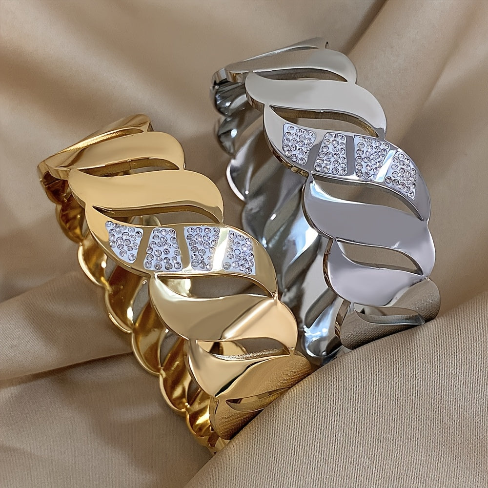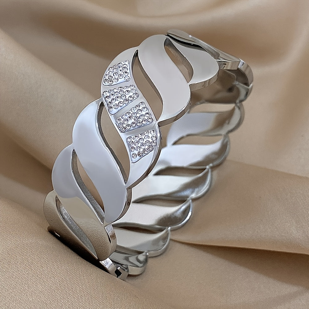 CHUAVOU Rhinestones Bracelet - Elegant Wide Cuff with Sparkling Stones, 304 Stainless Steel, Ideal for Parties & Daily Wear, Gift Bracelet|Elegant Accessory|Durable Bracelet