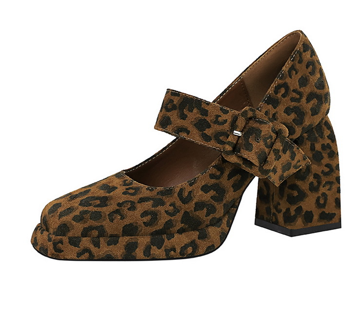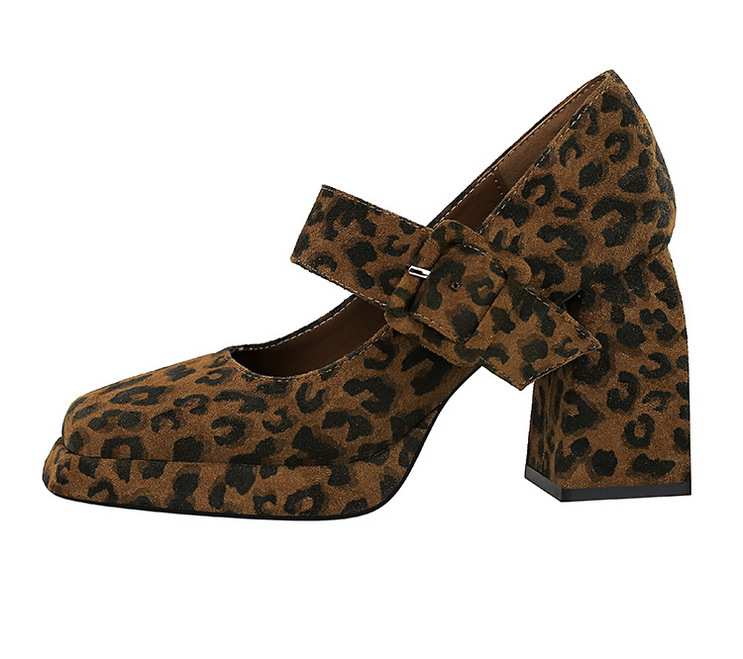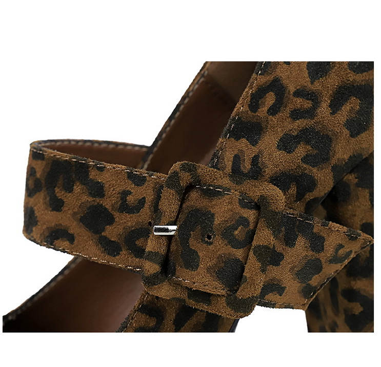 Chunky Heel High Heel Waterproof Platform Suede Leopard Print Shallow Mouth Suede Leopard Print Pumps Women Shoes