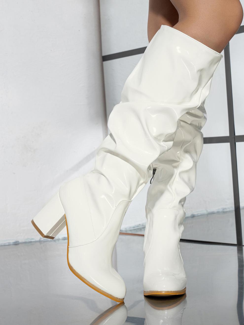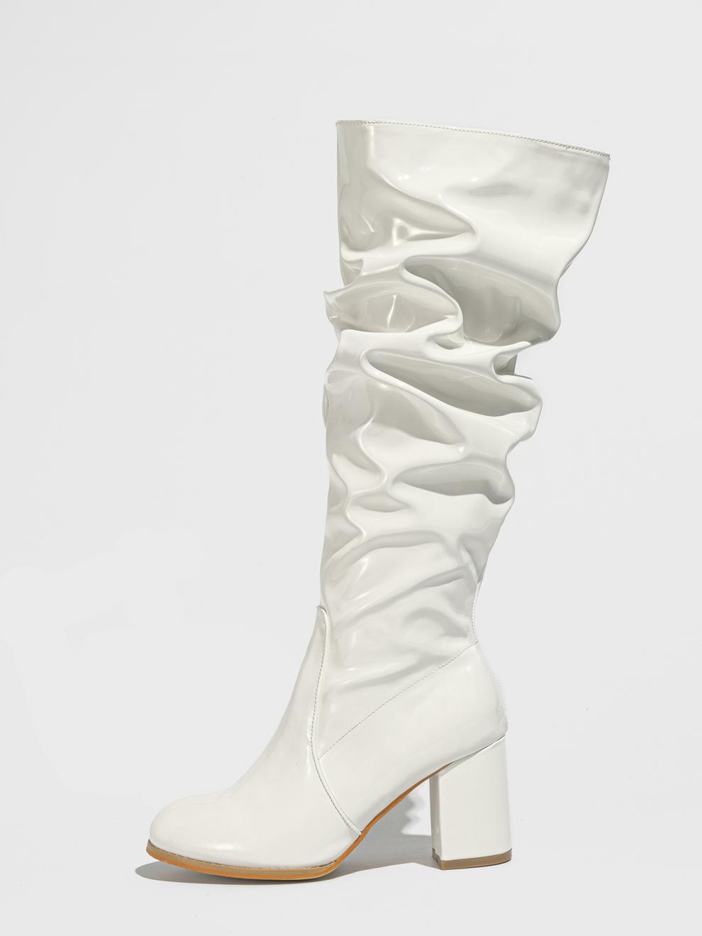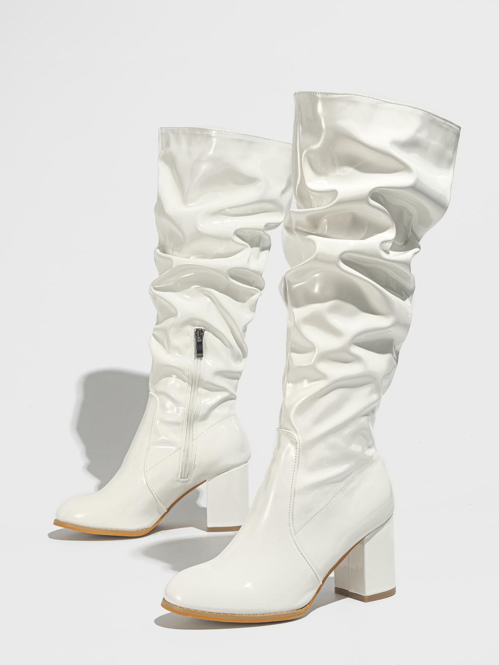 Chunky Heel Natural Wrinkle Mid Calf round Toe Boots