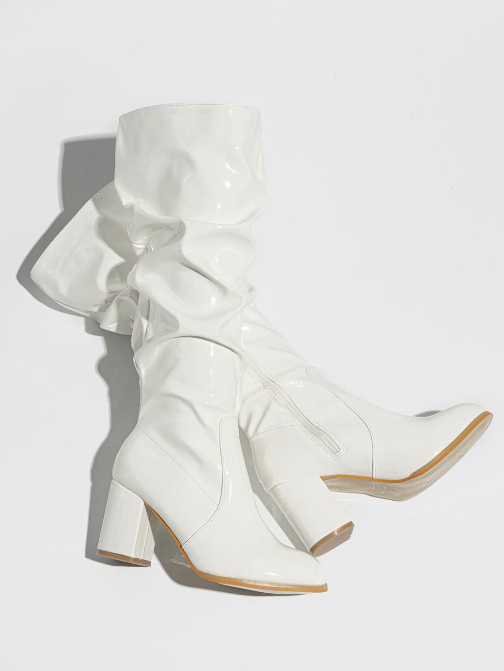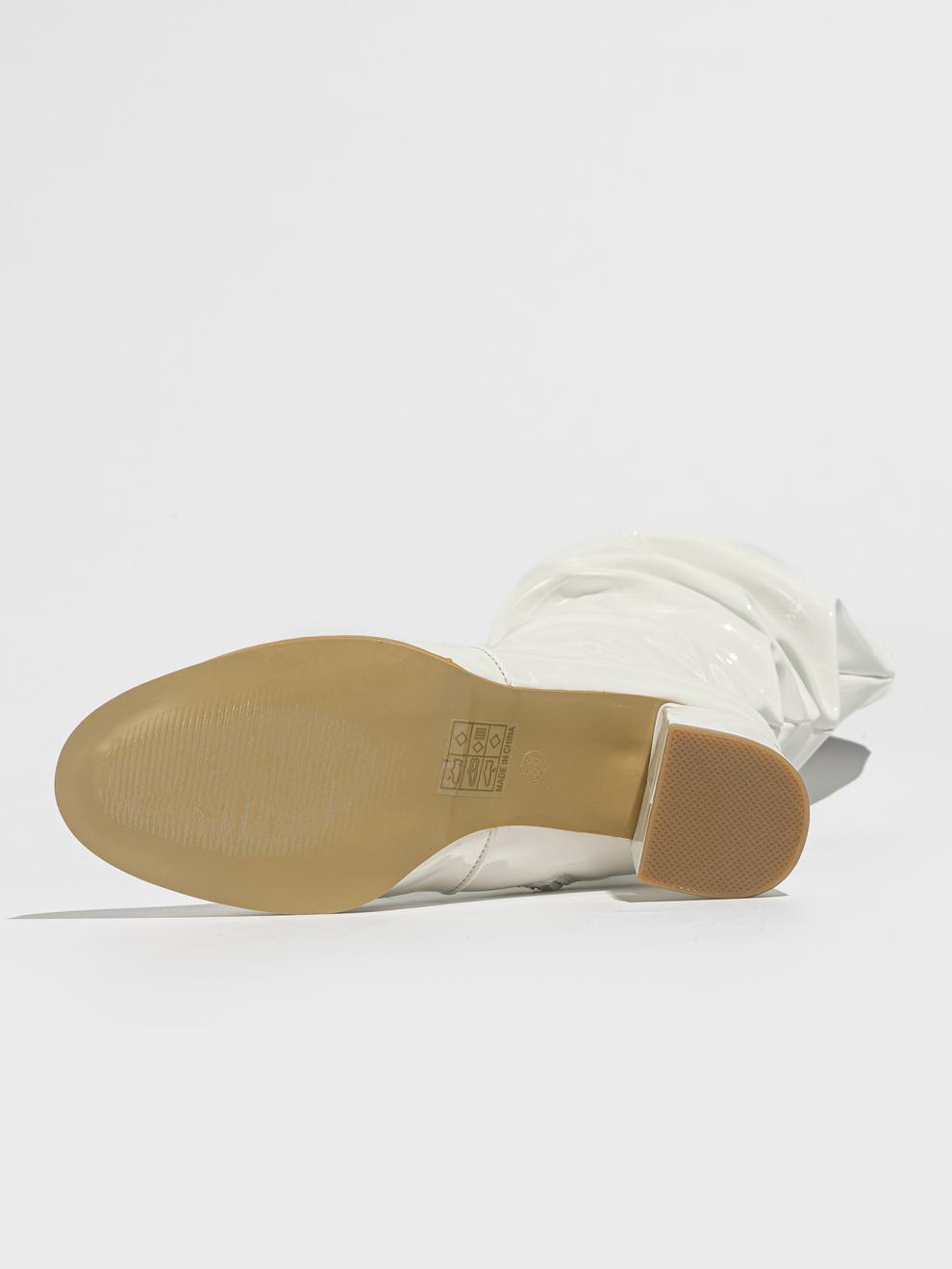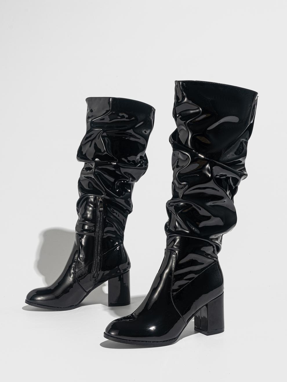 Chunky Heel Natural Wrinkle Mid Calf round Toe Boots