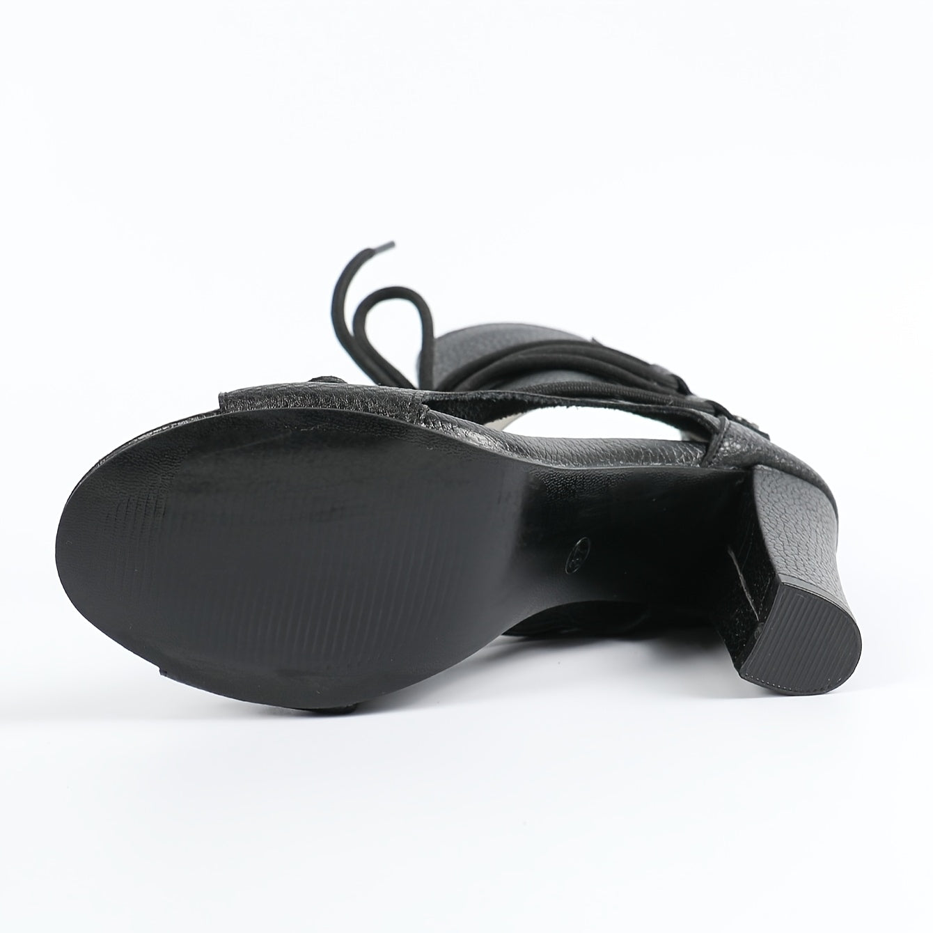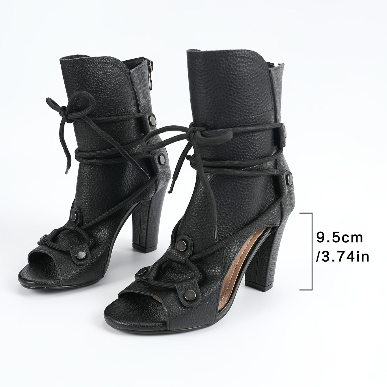 [Chunky Heel Sandals] Chunky Heel Women's Black Open-Toe Lace-Up Roman Sandals | Synthetic Cover Ankle Boots with Thick Heel & Fish Mouth Design, Retro Style for Spring