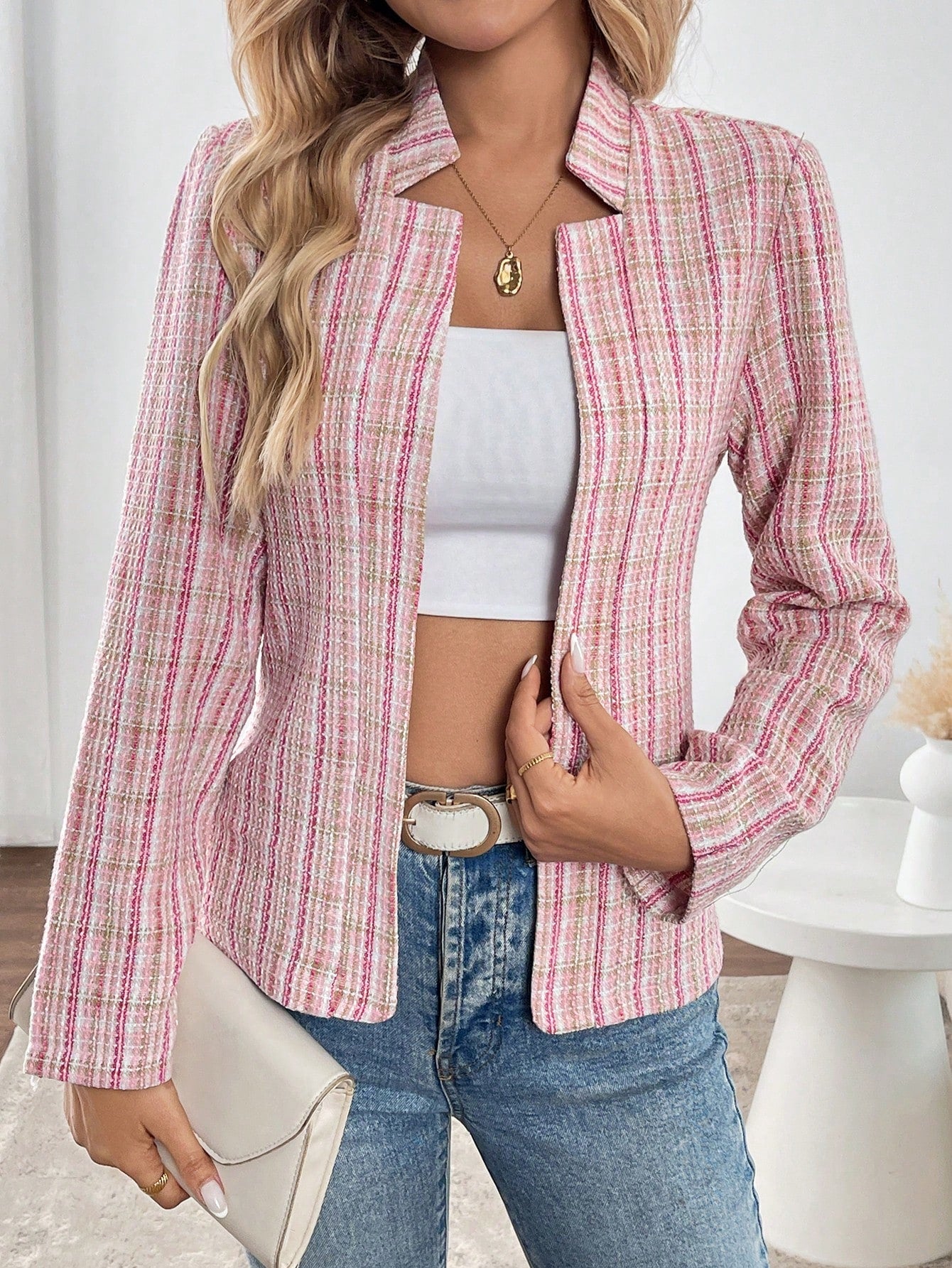 Clasi Casual Plaid Tweed Jacket, Autumn