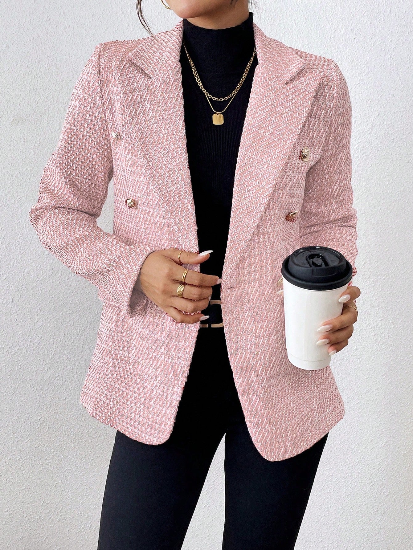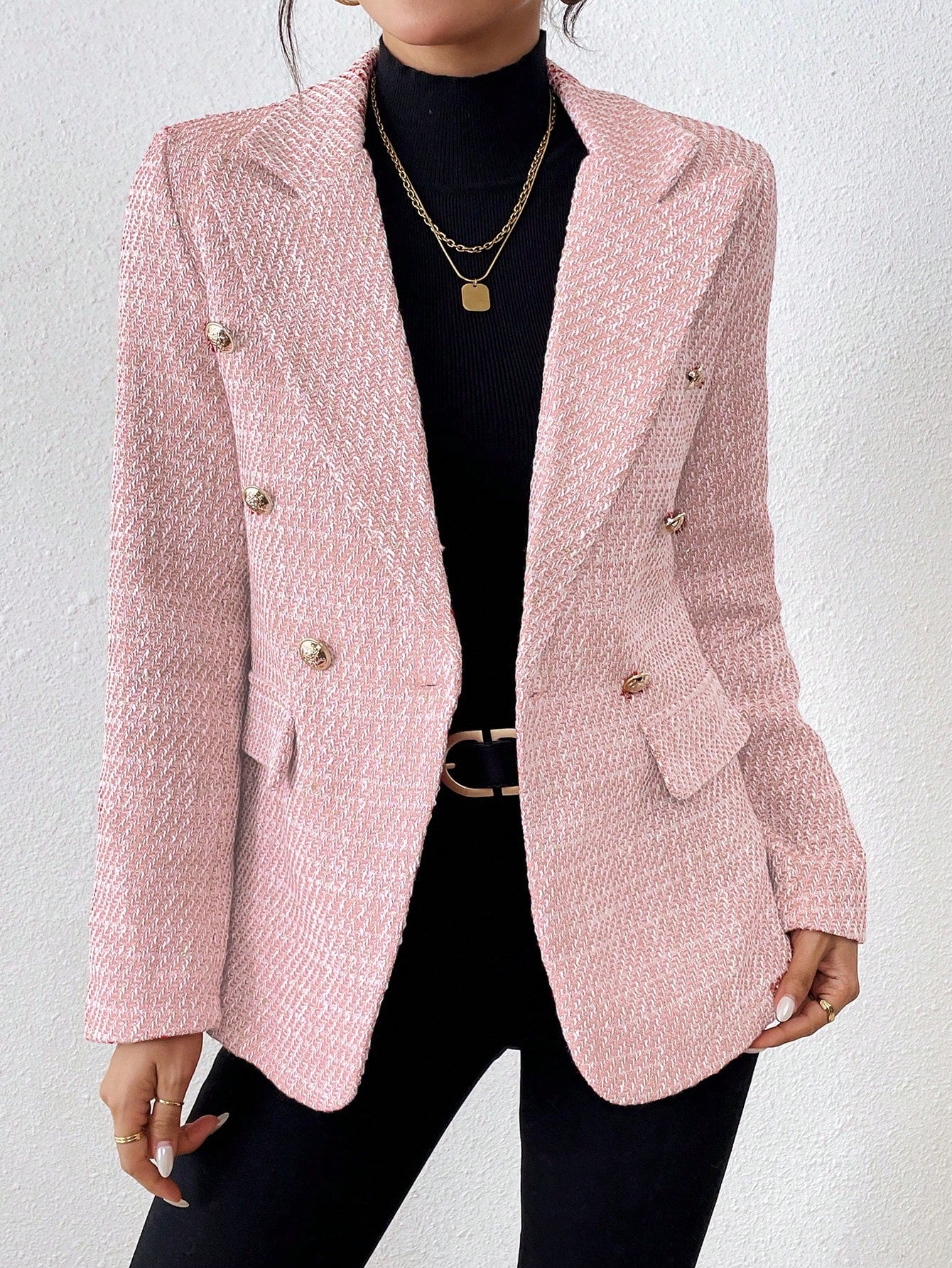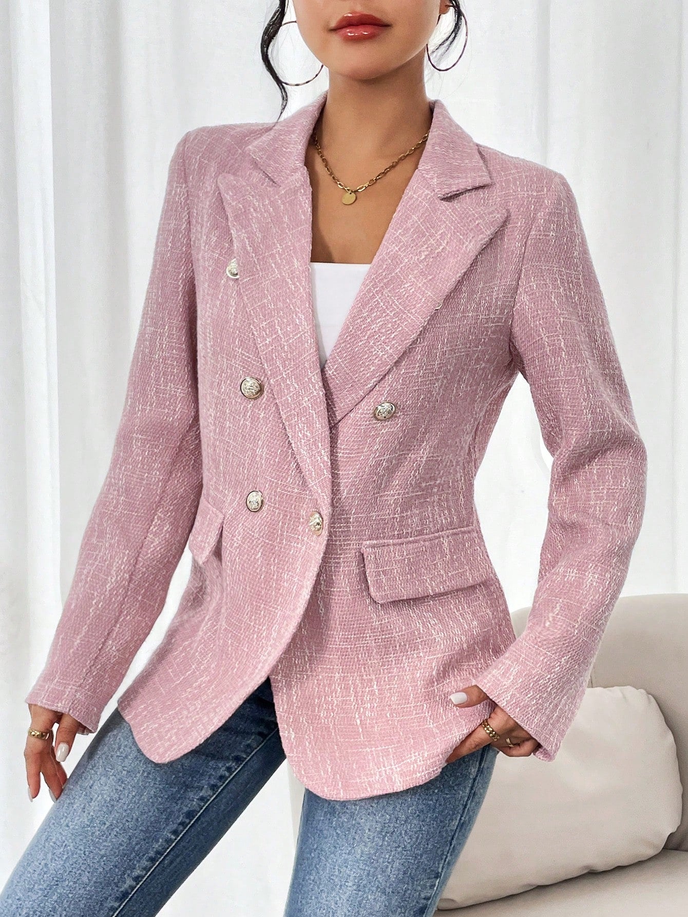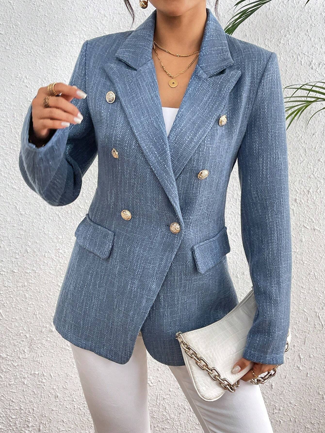 Clasi Plain Color Double Breasted Elegant Long Sleeve Suit Jacket