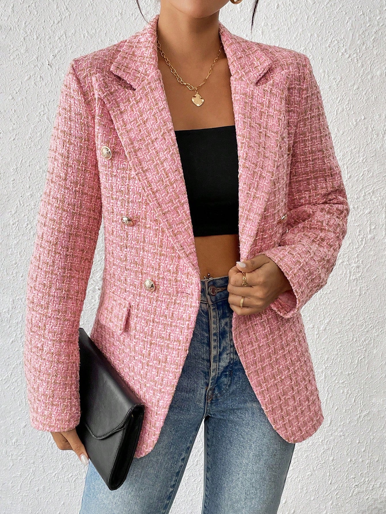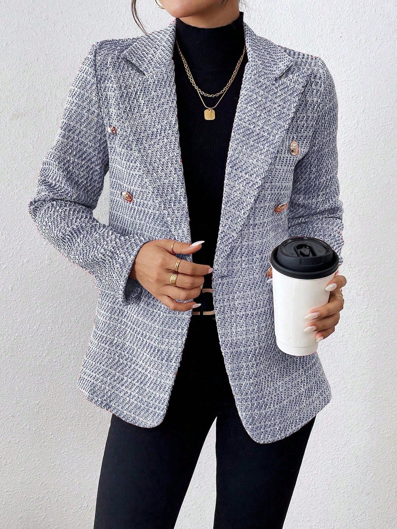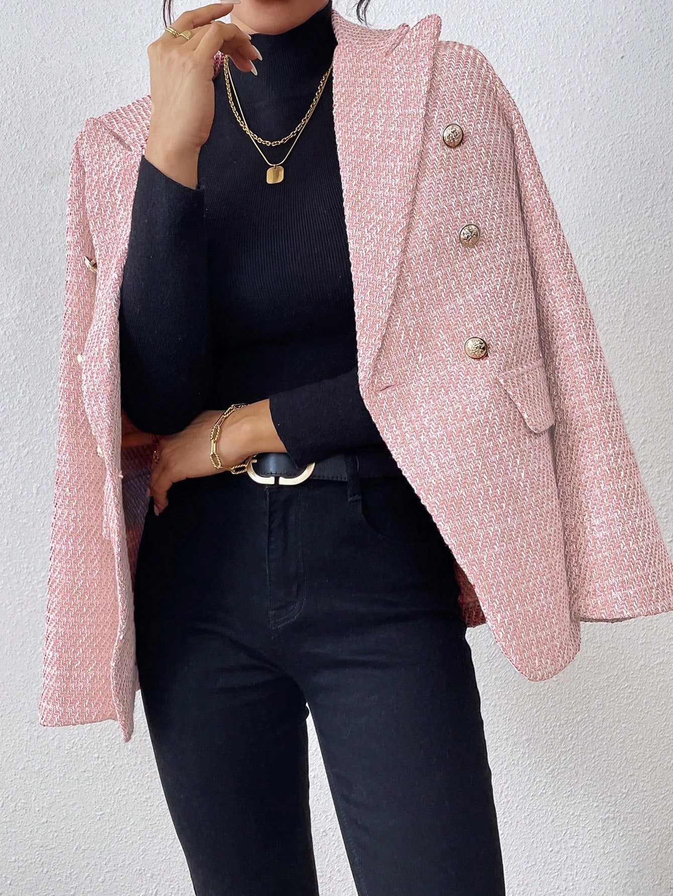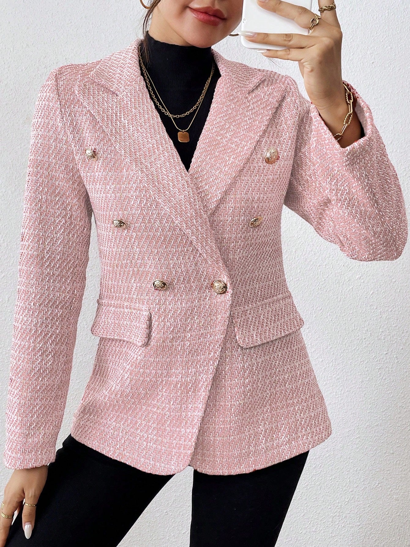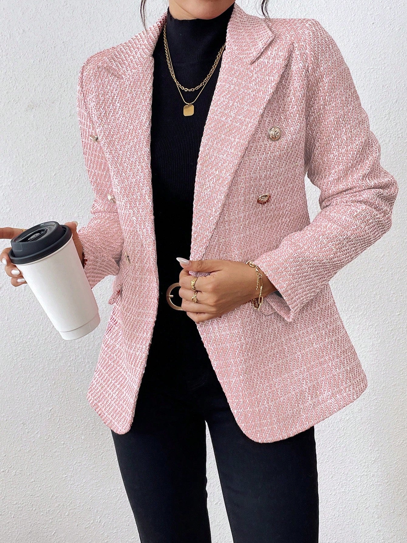 Clasi Plain Color Double Breasted Elegant Long Sleeve Suit Jacket