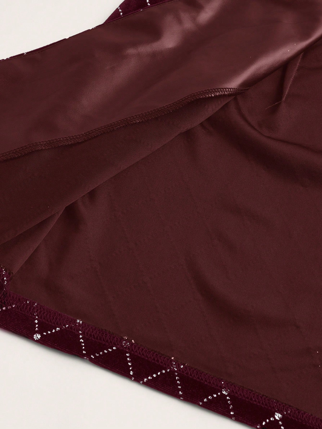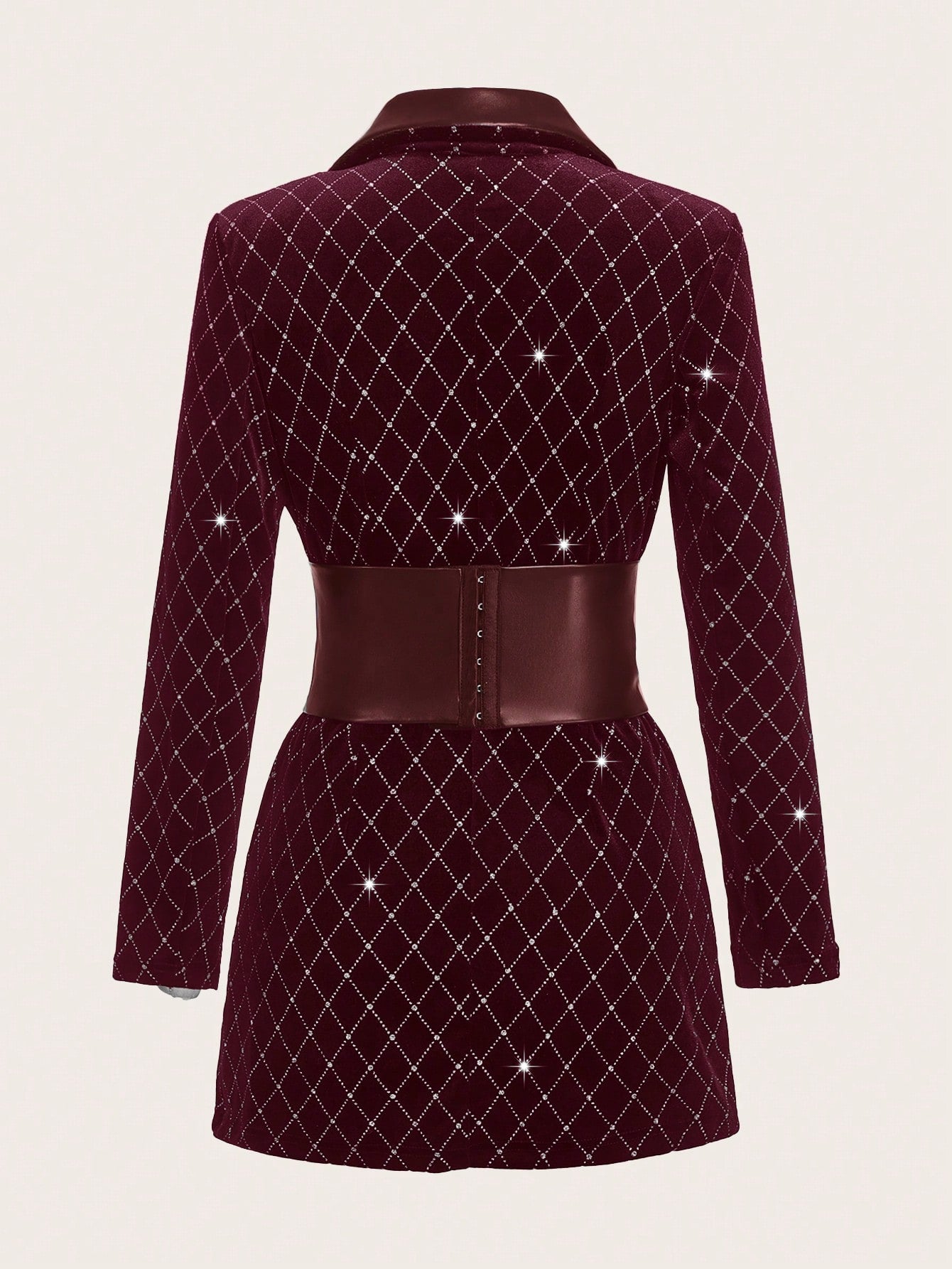 Clasi Women Blazer Style PU Velvet Diamond Jacket (With Belt)